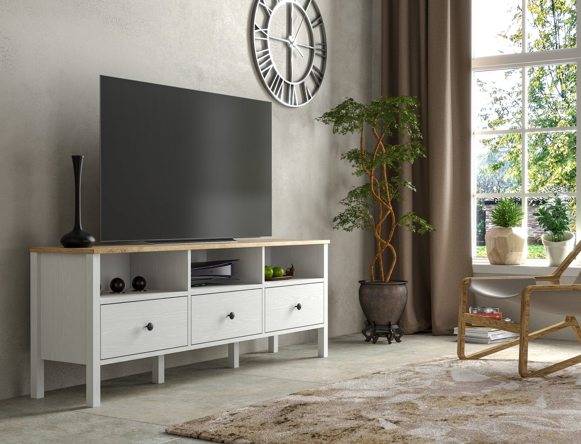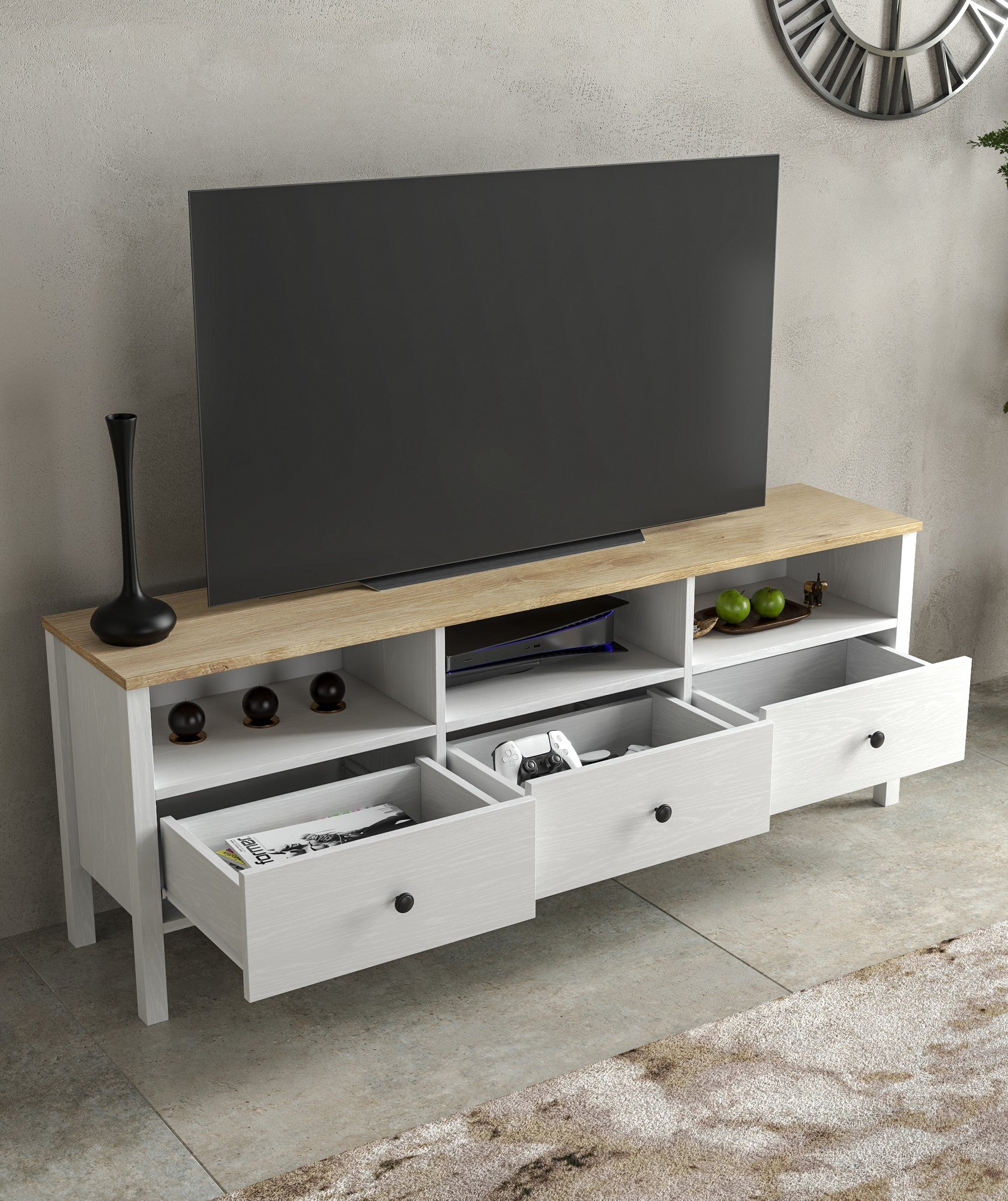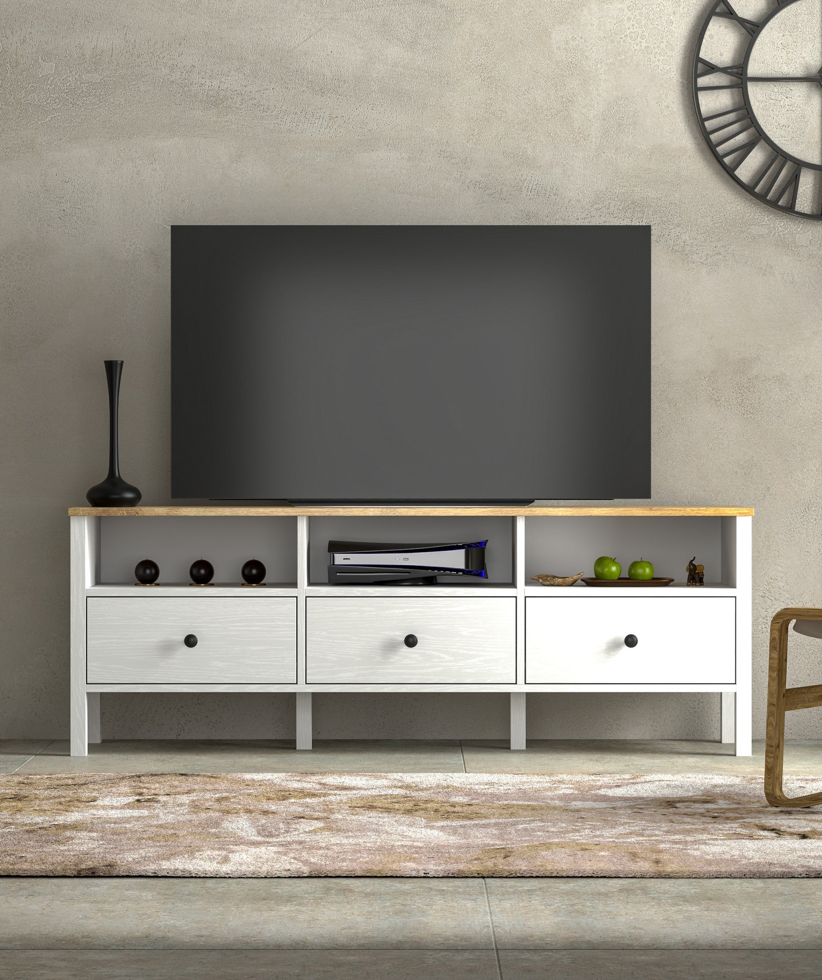 Móvel de TV – 160 cm x 58 cm x 35 cm – Branco e madeira – Aglomerado