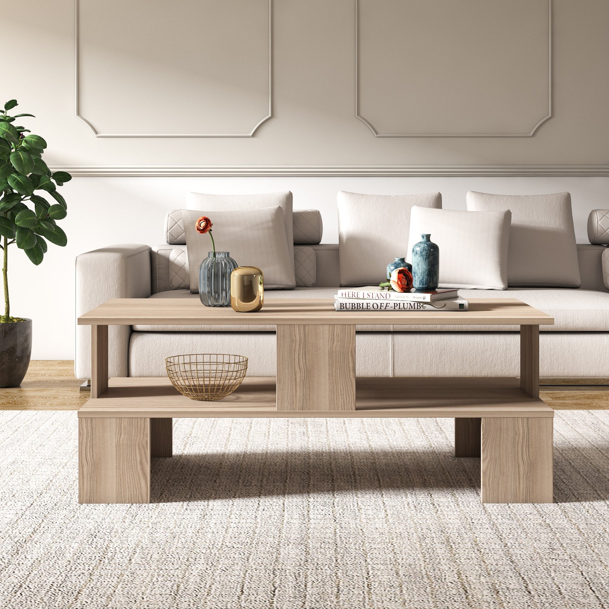 Esta não é apenas uma mesa de centro comum - é uma solução completa de arrumação que maximiza o seu espaço enquanto adiciona um toque de elegância ao ambiente. As suas múltiplas prateleiras eliminam a desordem, mantendo tudo organizado e ao seu alcance.