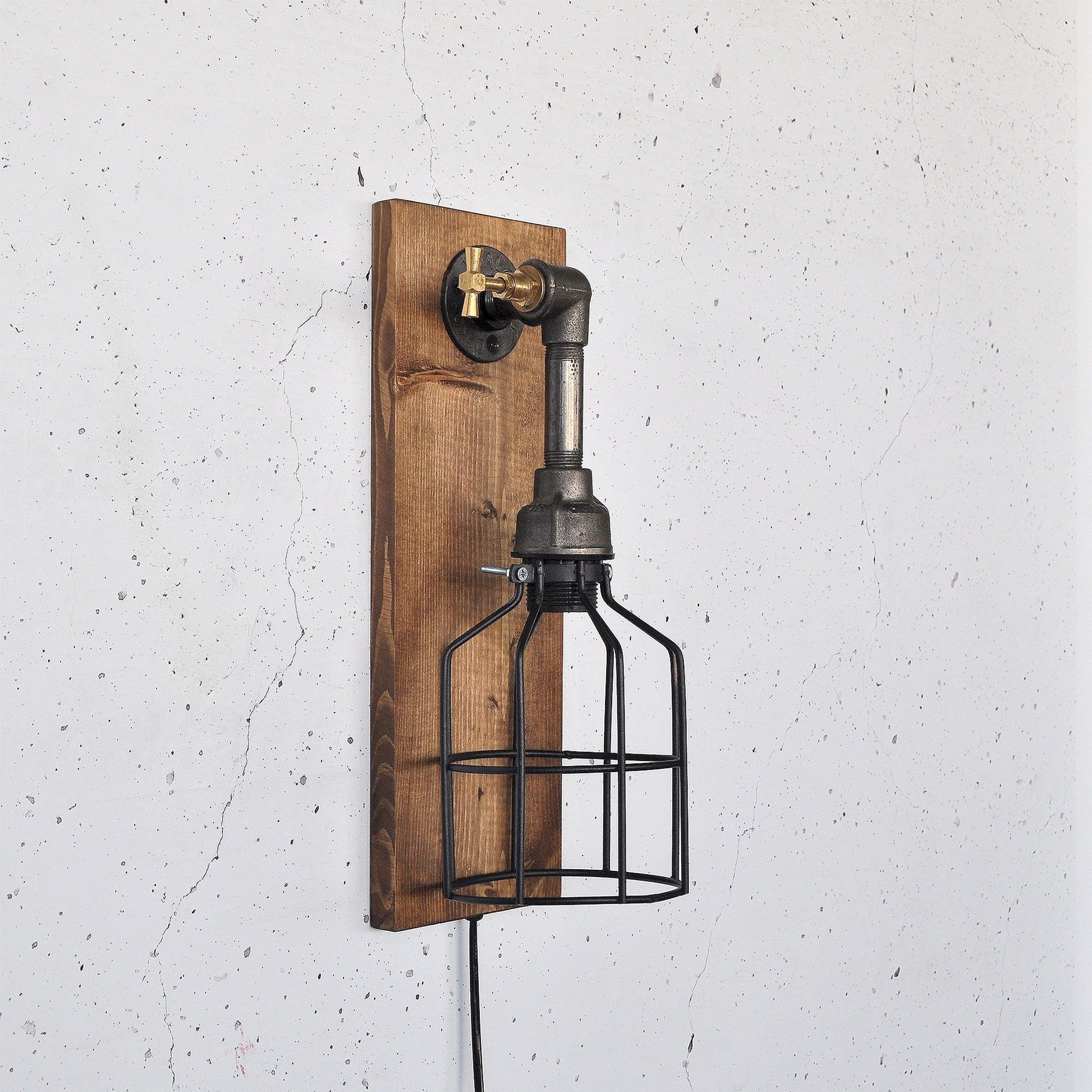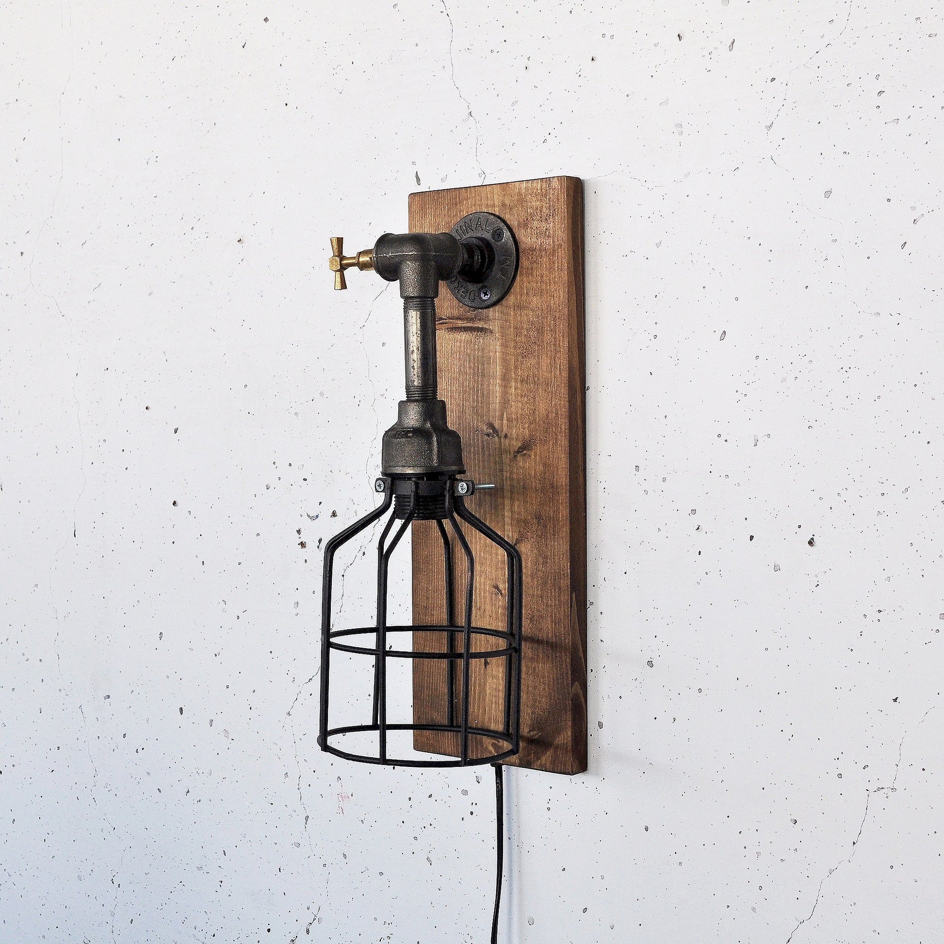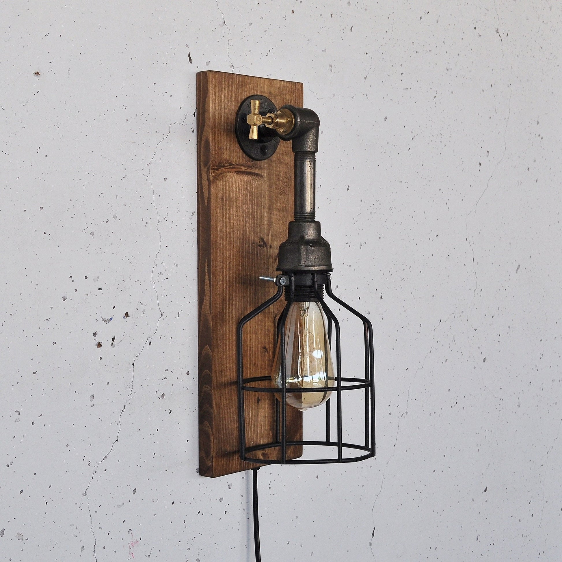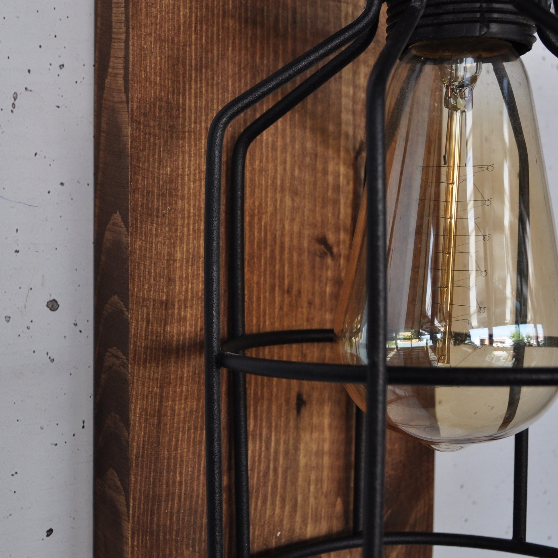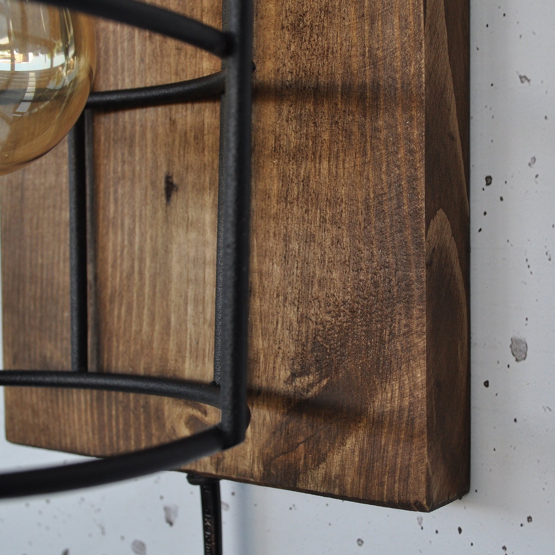 Candeeiro de Parede – 40 x 14 x 16 cm – Preto – Madeira Maciça