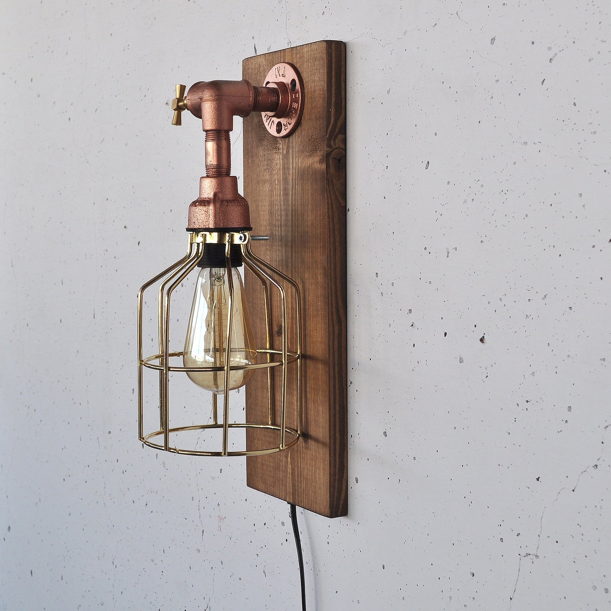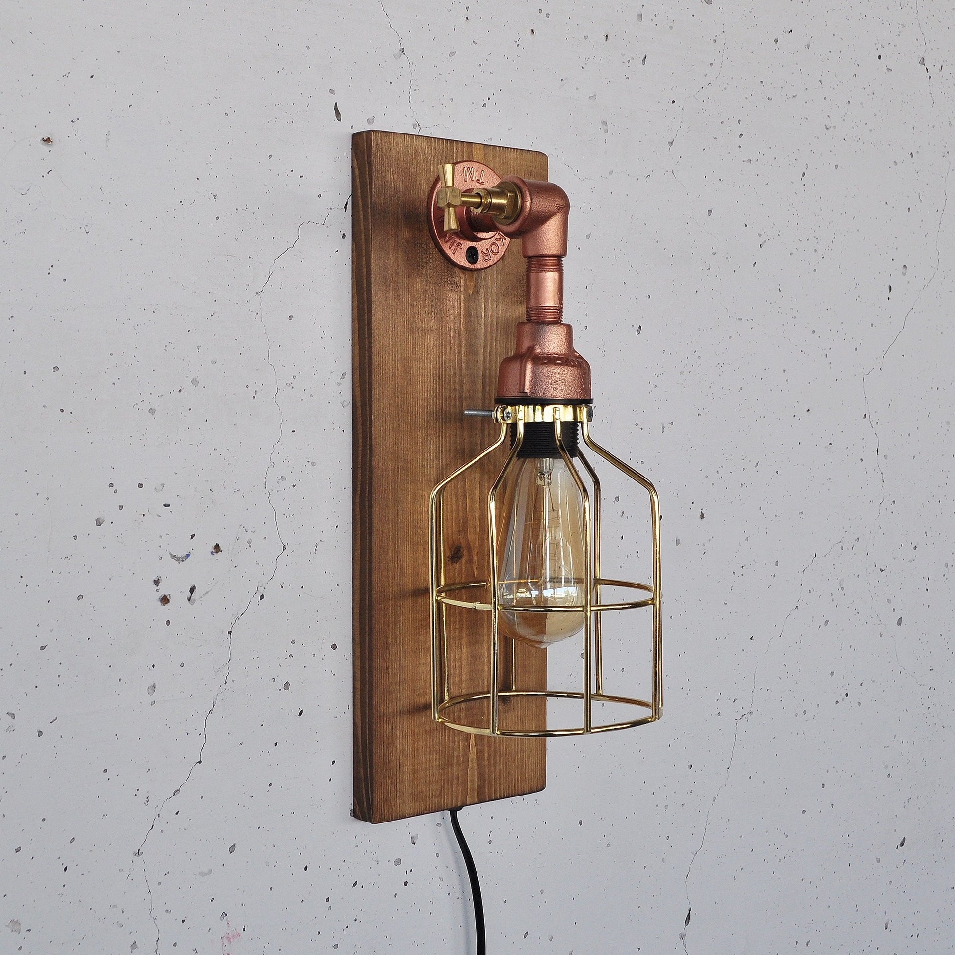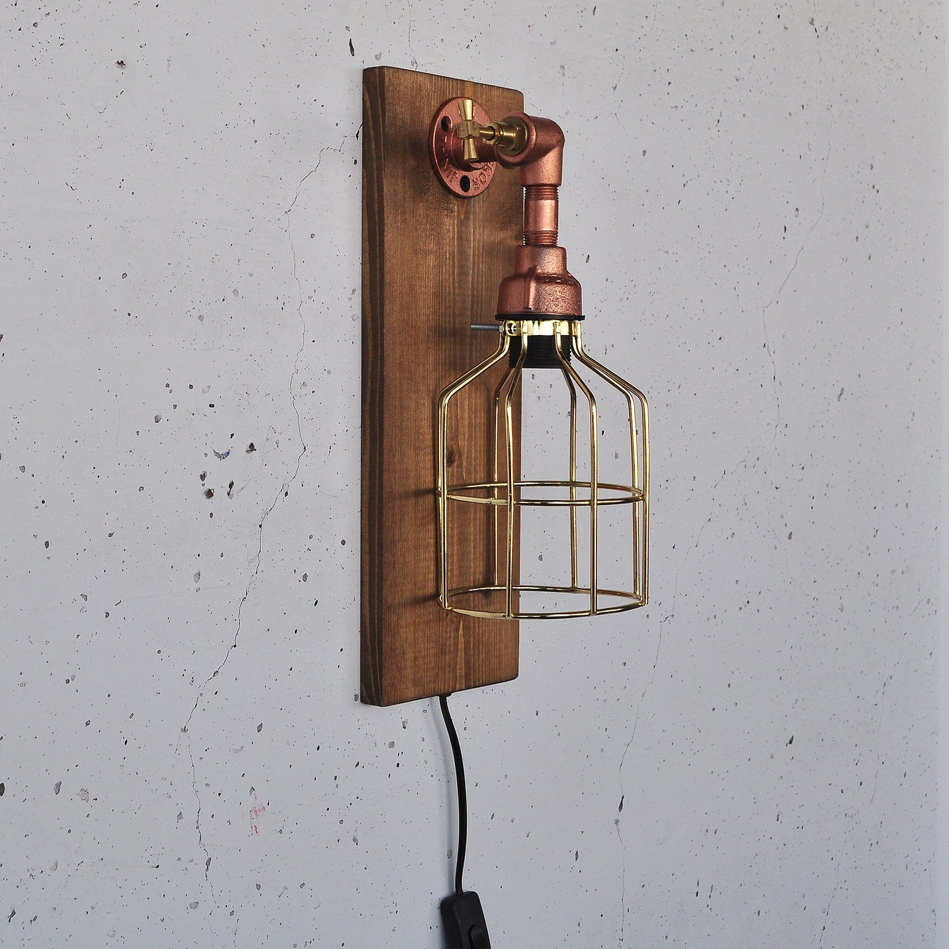 Candeeiro de Parede – 40 x 14 x 16 cm – Madeira e Ouro Rosa – Madeira Maciça