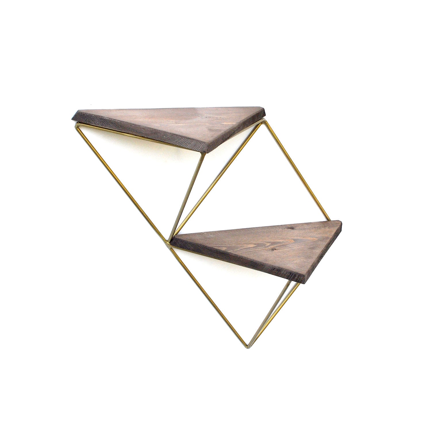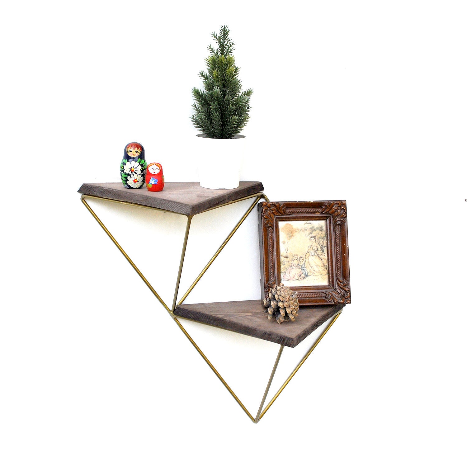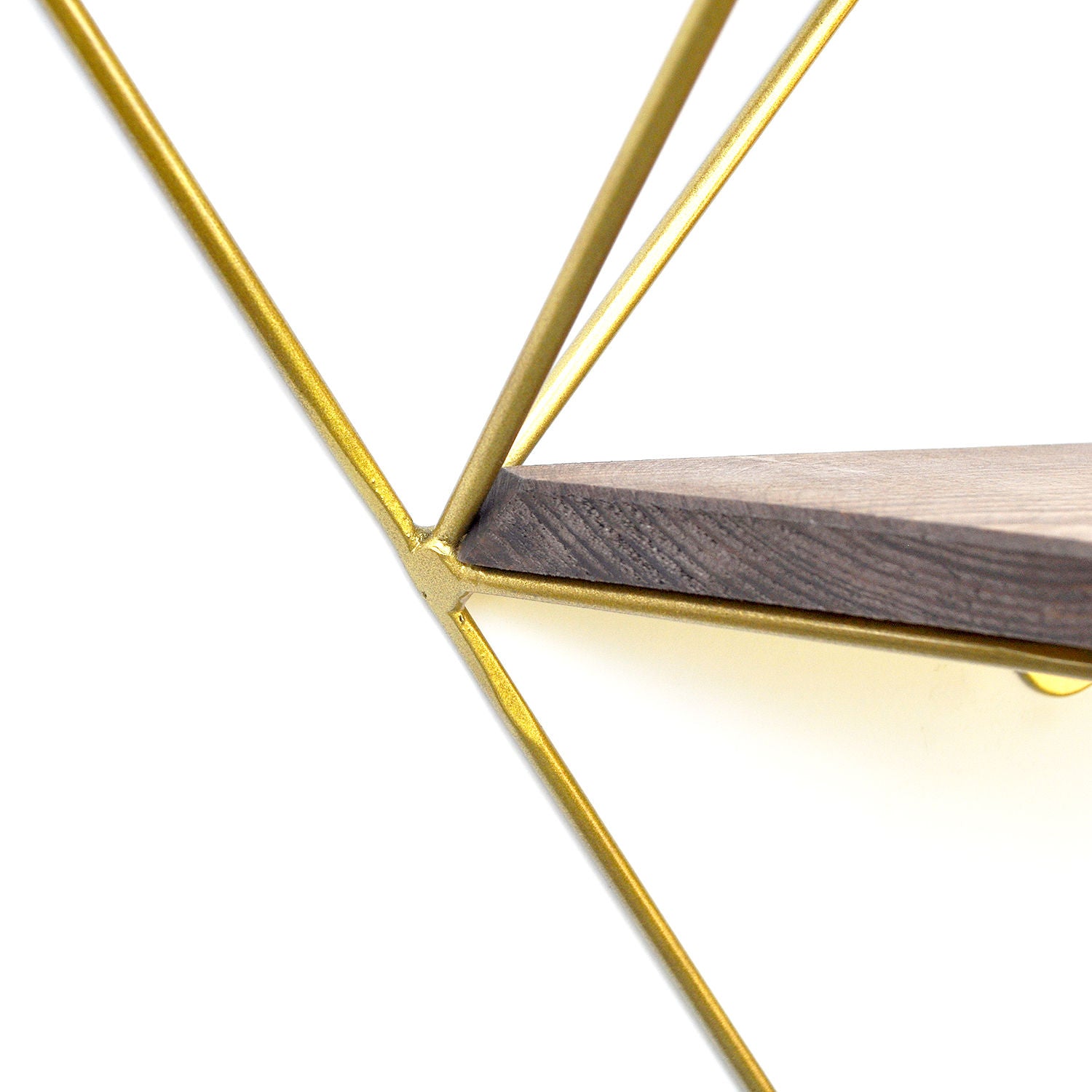 Prateleira de parede de madeira – 30 cm x 33 cm x 13 cm – Nogueira e dourado – Madeira maciça