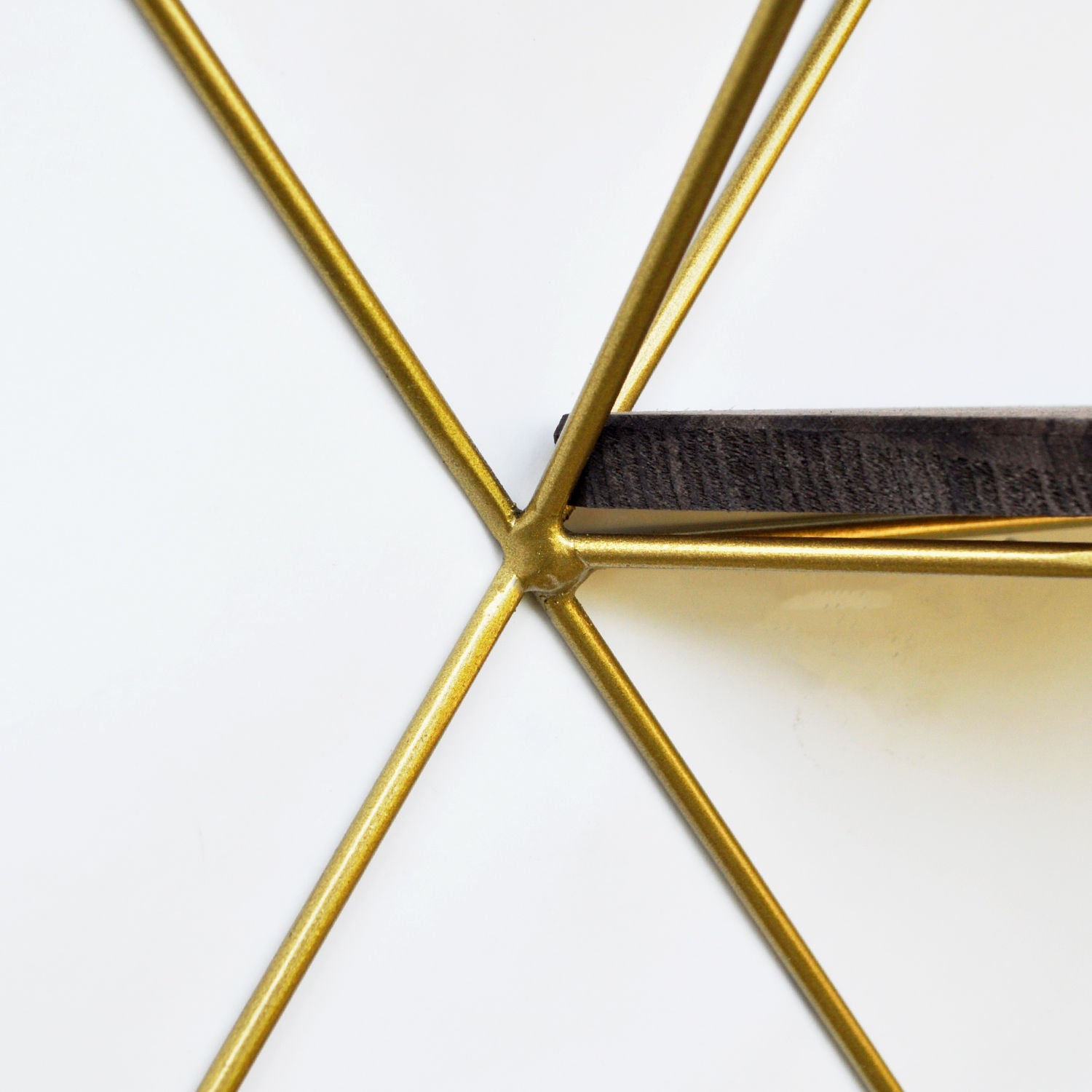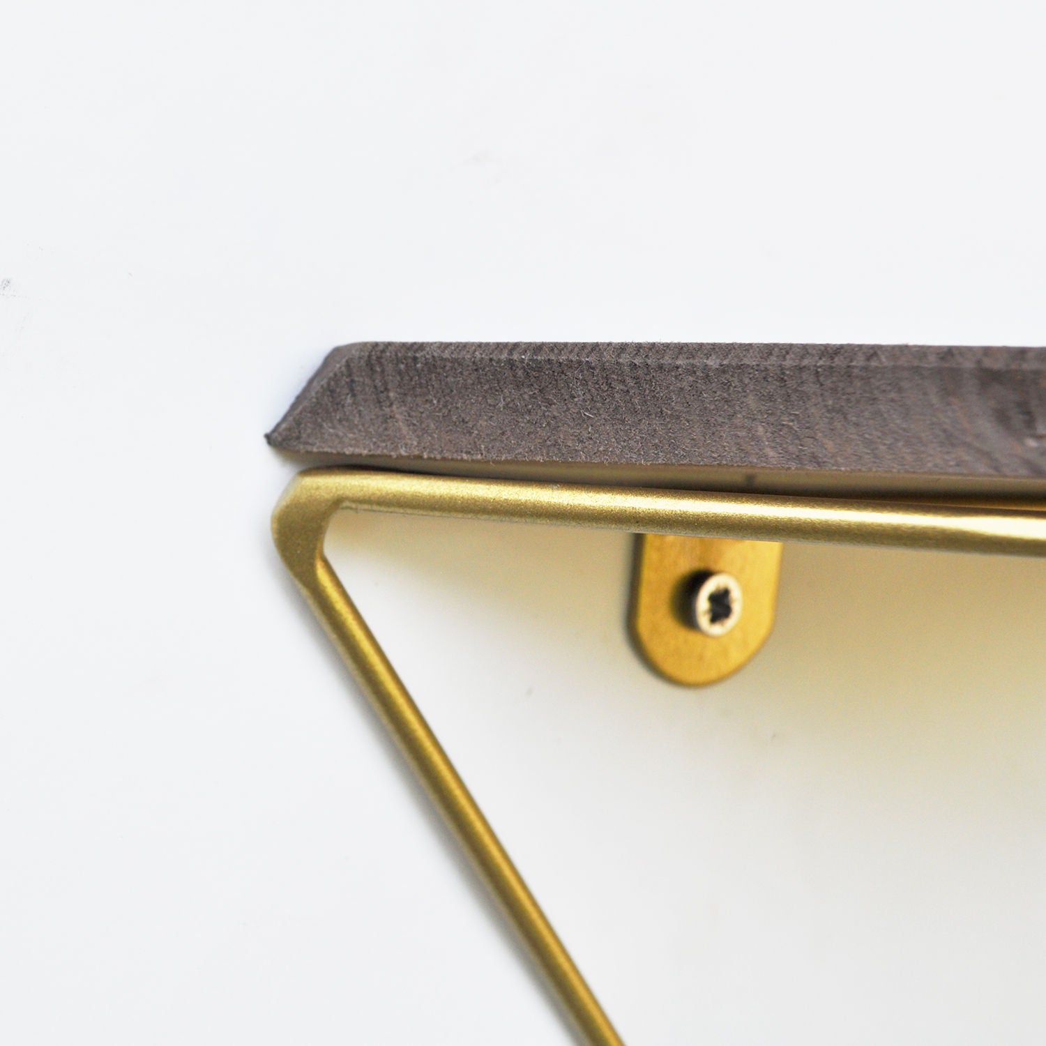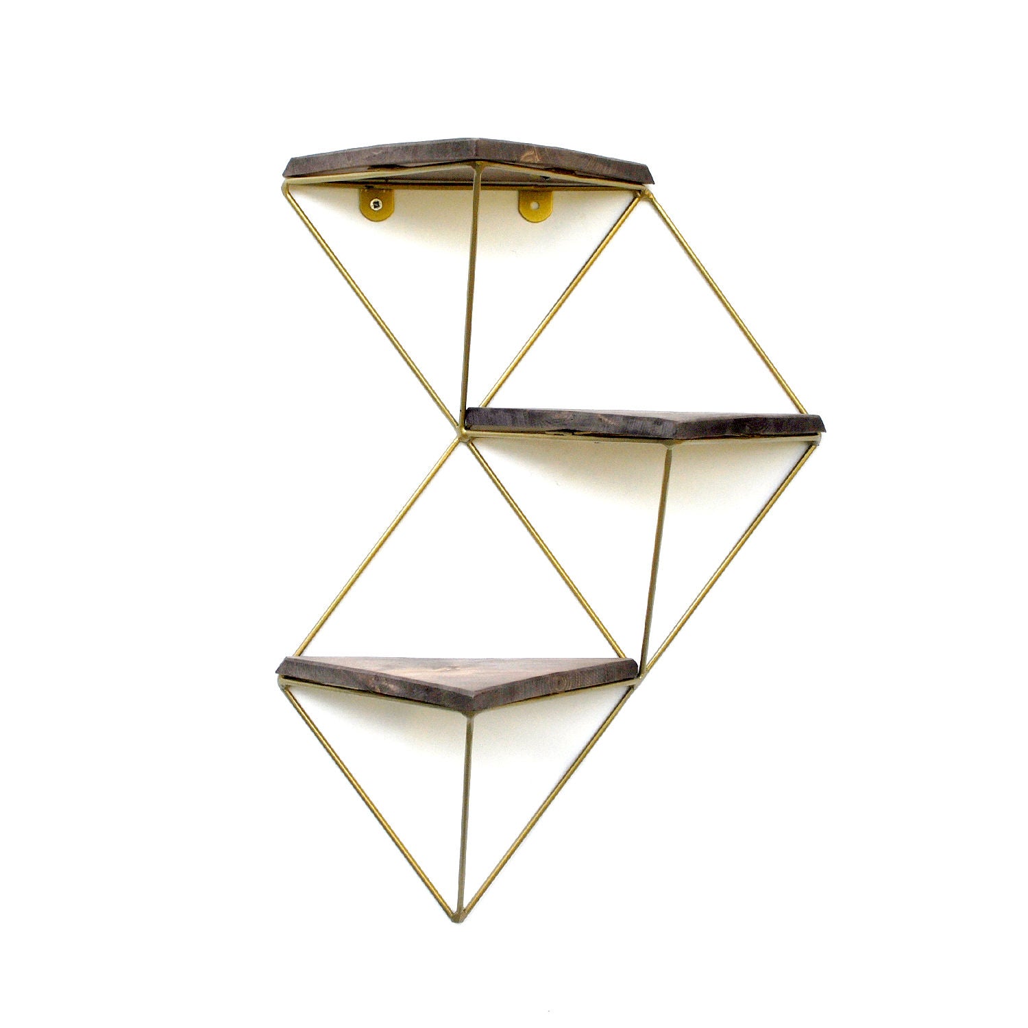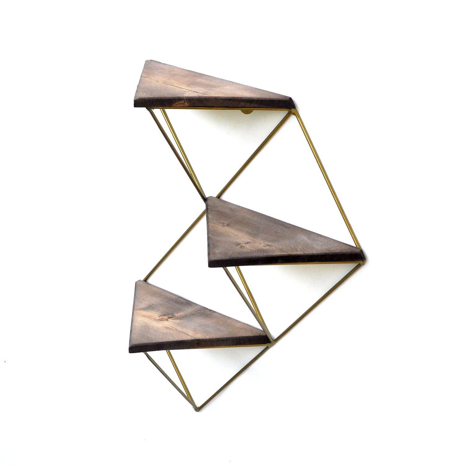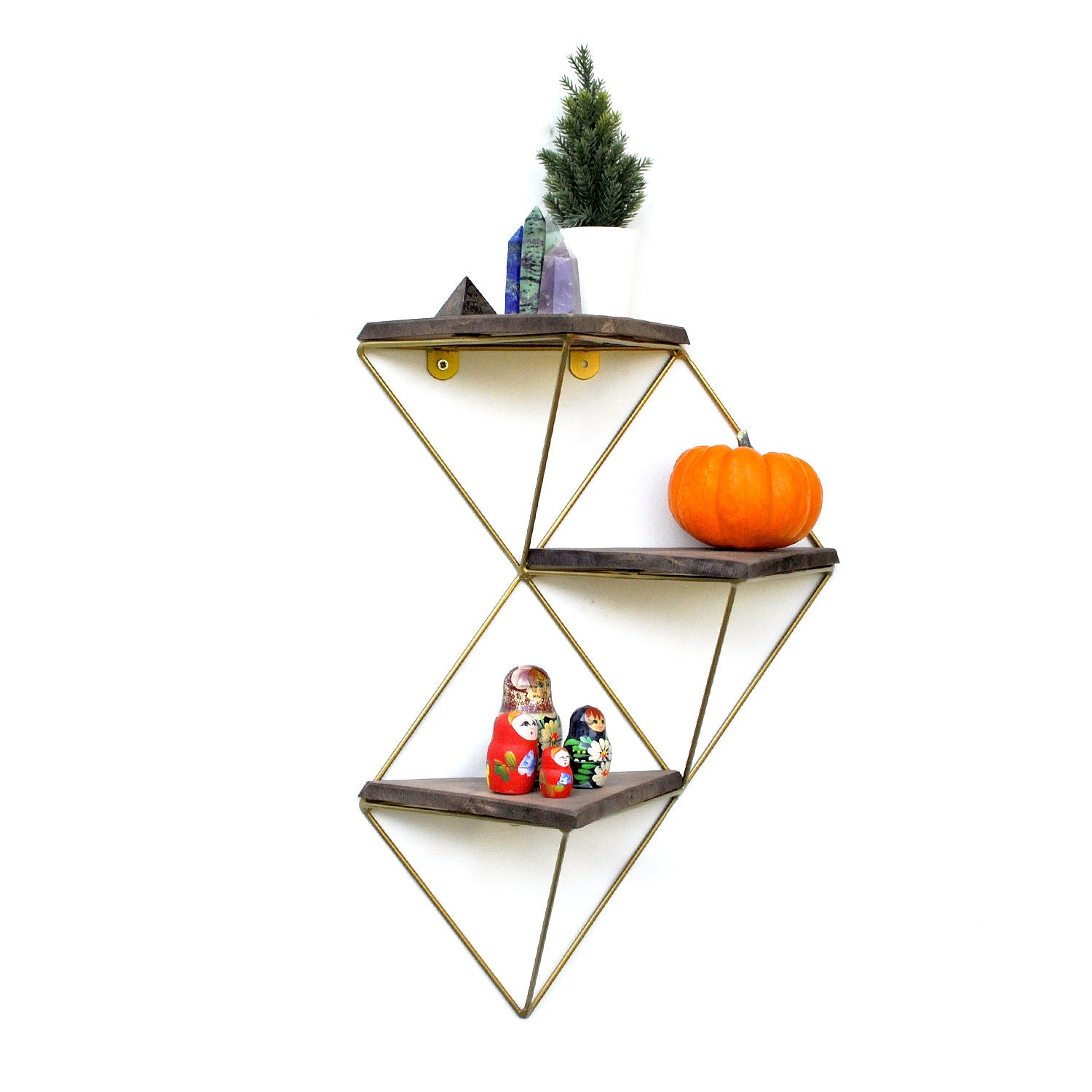 Prateleira decorativa de parede em madeira – 34 cm x 45 cm x 13 cm – Nogueira e Dourado