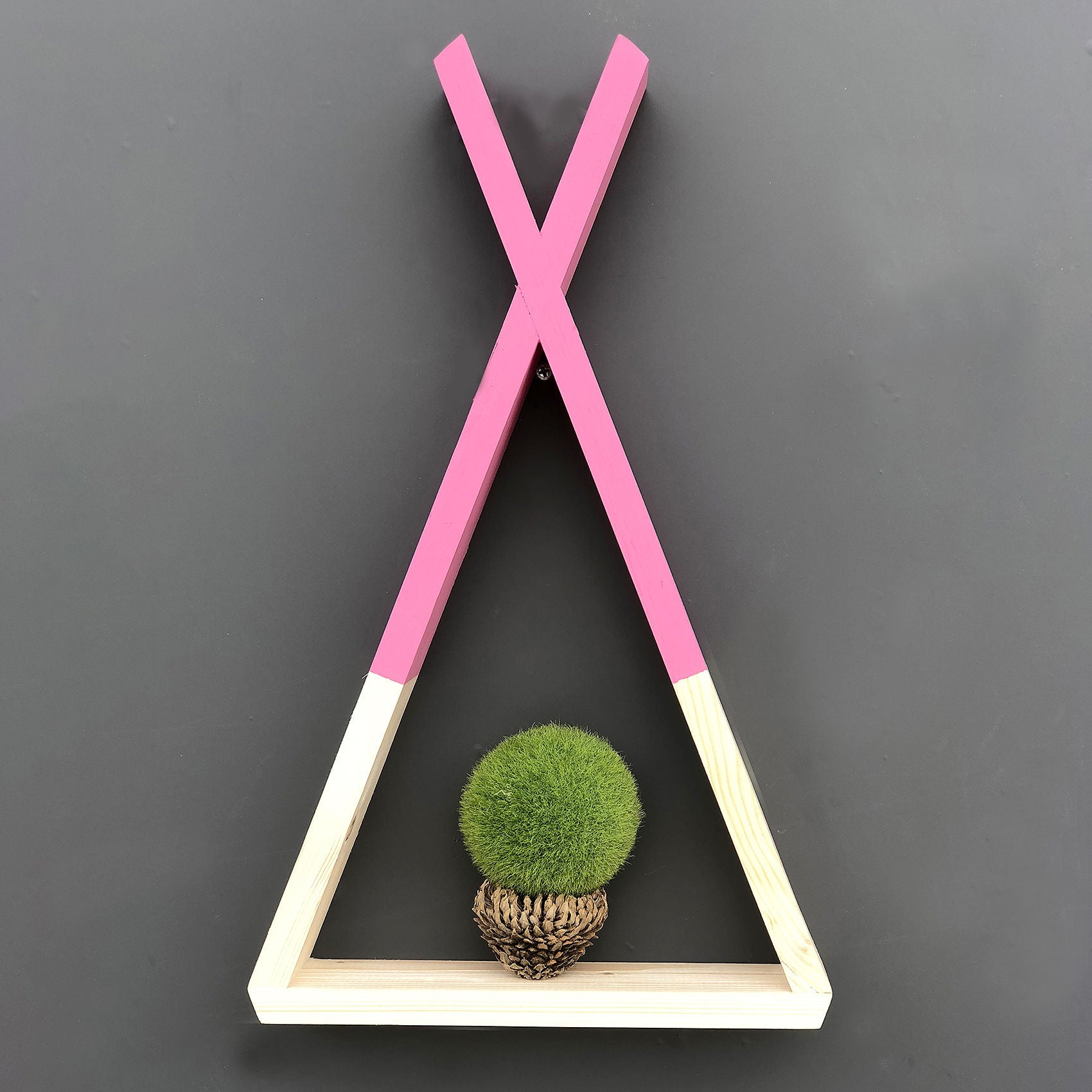 Prateleira de parede – 25cm x 42cm x 6cm – Nogueira e Rosa – Madeira Sólida