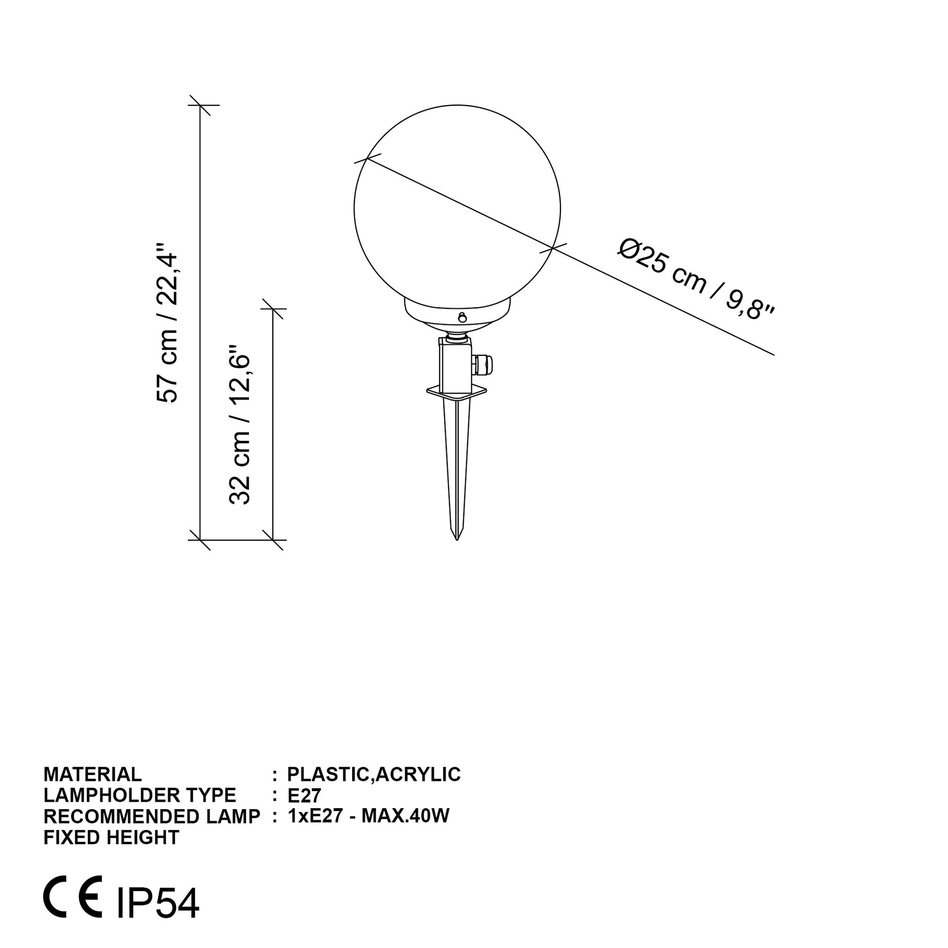 - Diâmetro do globo: 25 cm