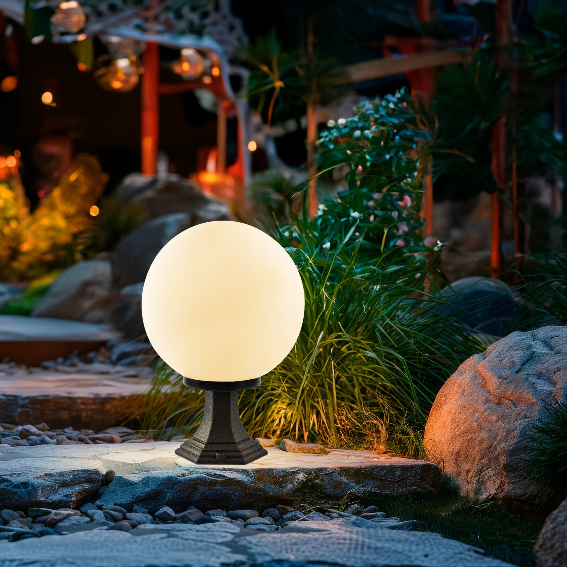 Candeeiro de Pé para Exterior – 30 cm diâmetro – Preto – Plástico/Acrílico