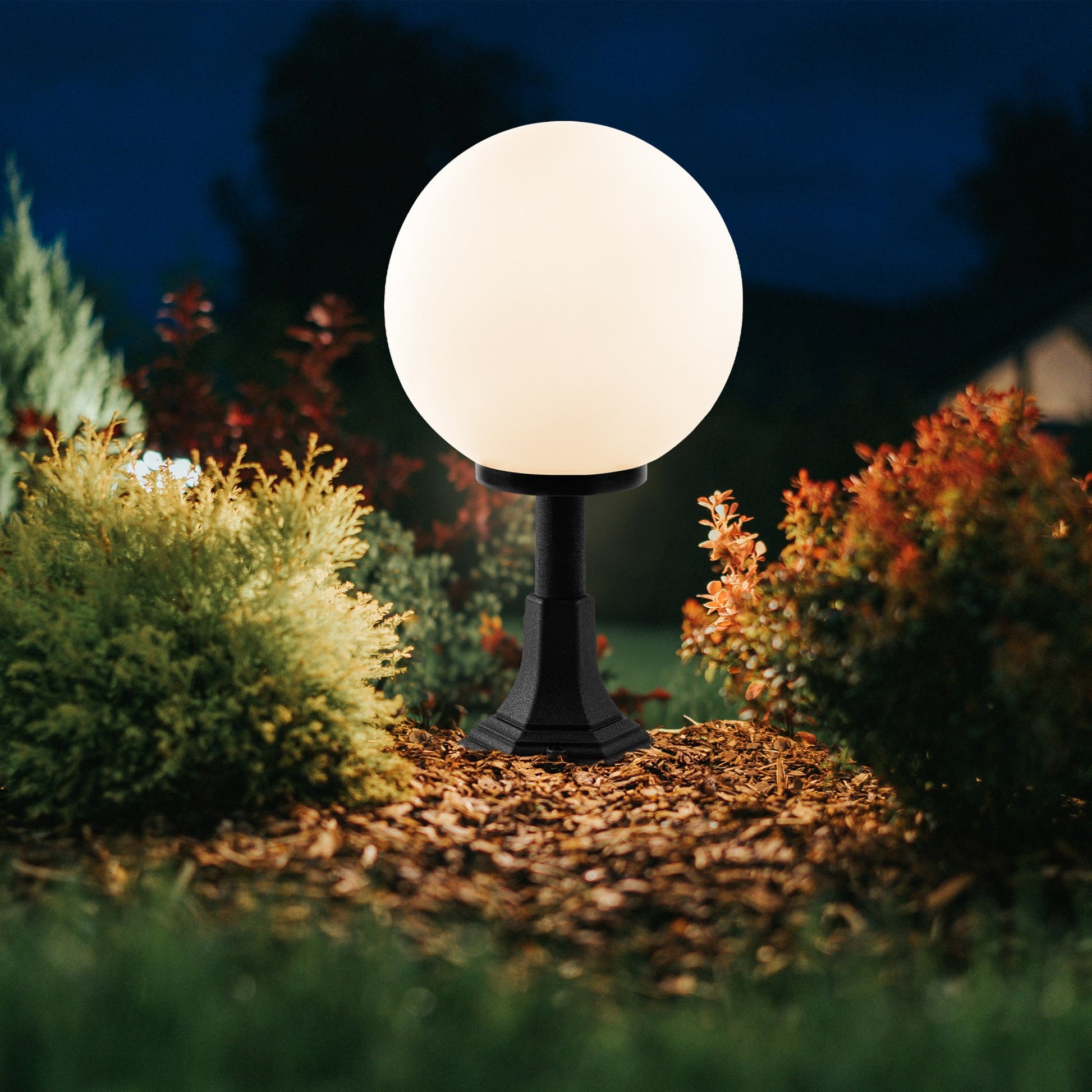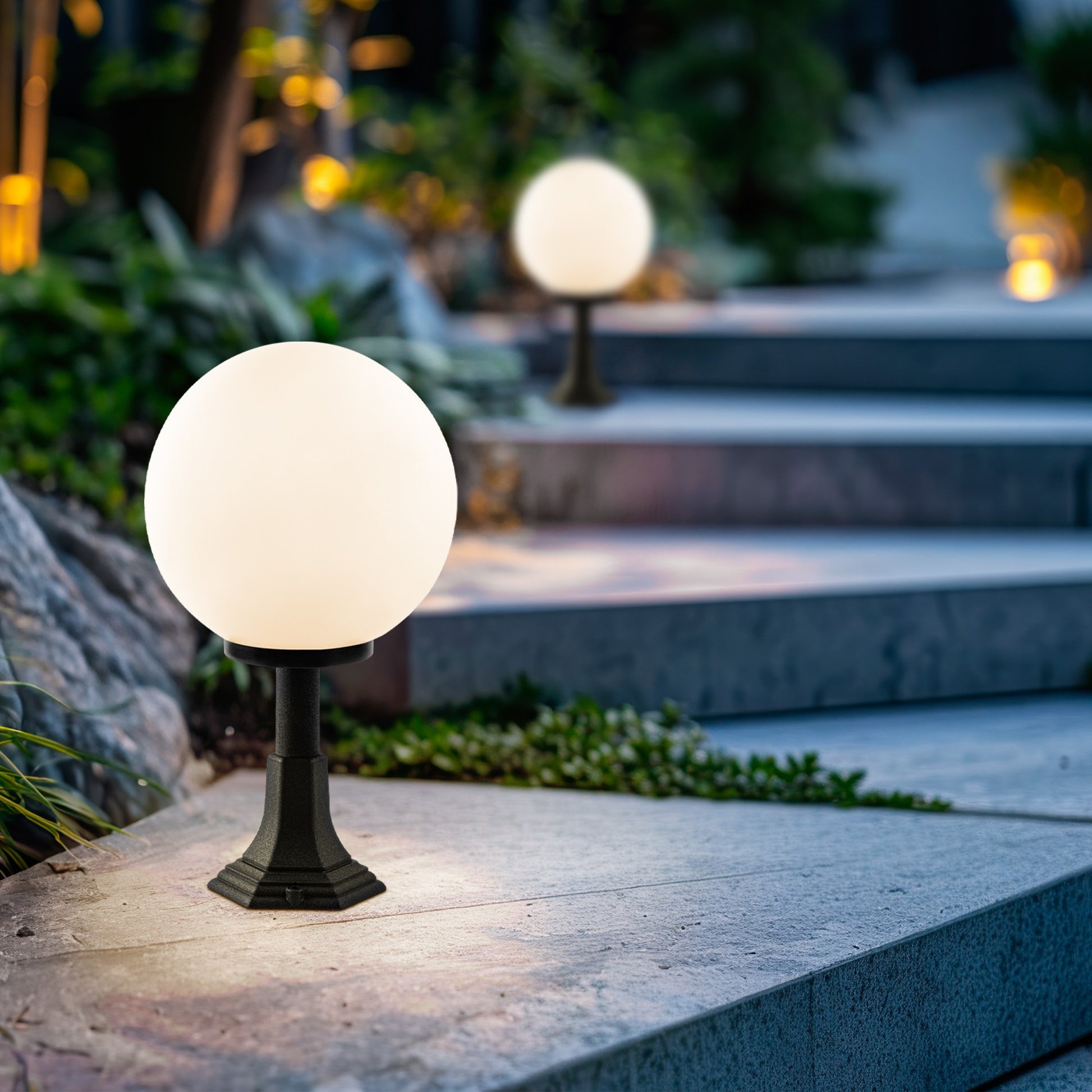 Fabricado com materiais de alta qualidade, este candeeiro de pé para exterior foi construído para durar. A cor preta acrescenta um toque de elegância, enquanto o diâmetro do globo de 30 cm e a altura total de 60 cm fazem dele o tamanho perfeito para qualquer espaço exterior. A classificação ip62 garante a proteção contra pó e água, tornando-o adequado para utilização no exterior.