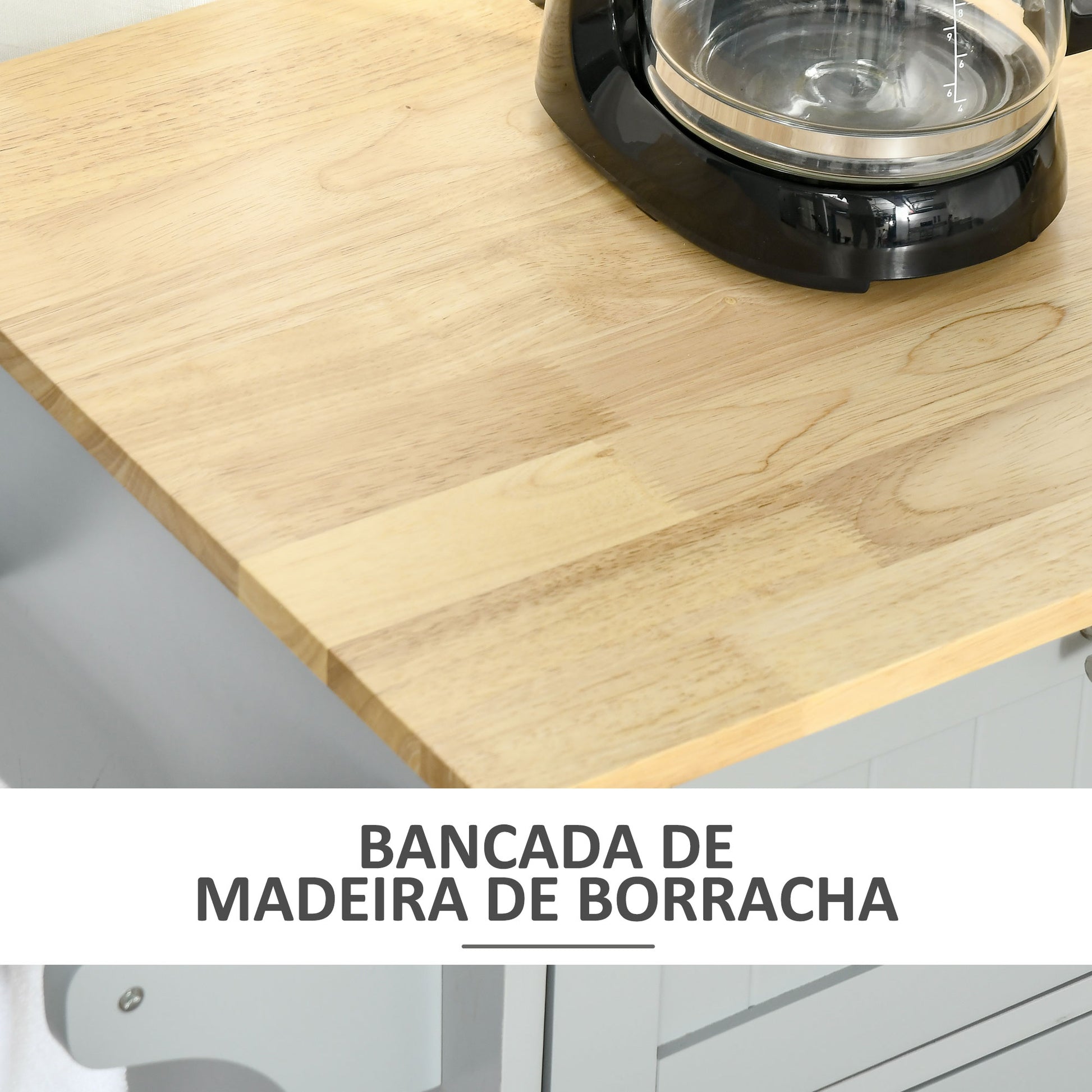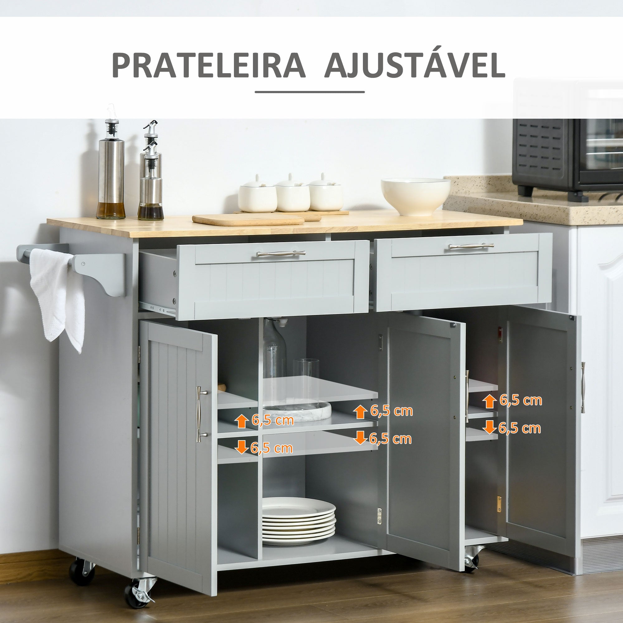 Carrinho de Cozinha Multiuso – 121x46x91cm – Cinza e Madeira
