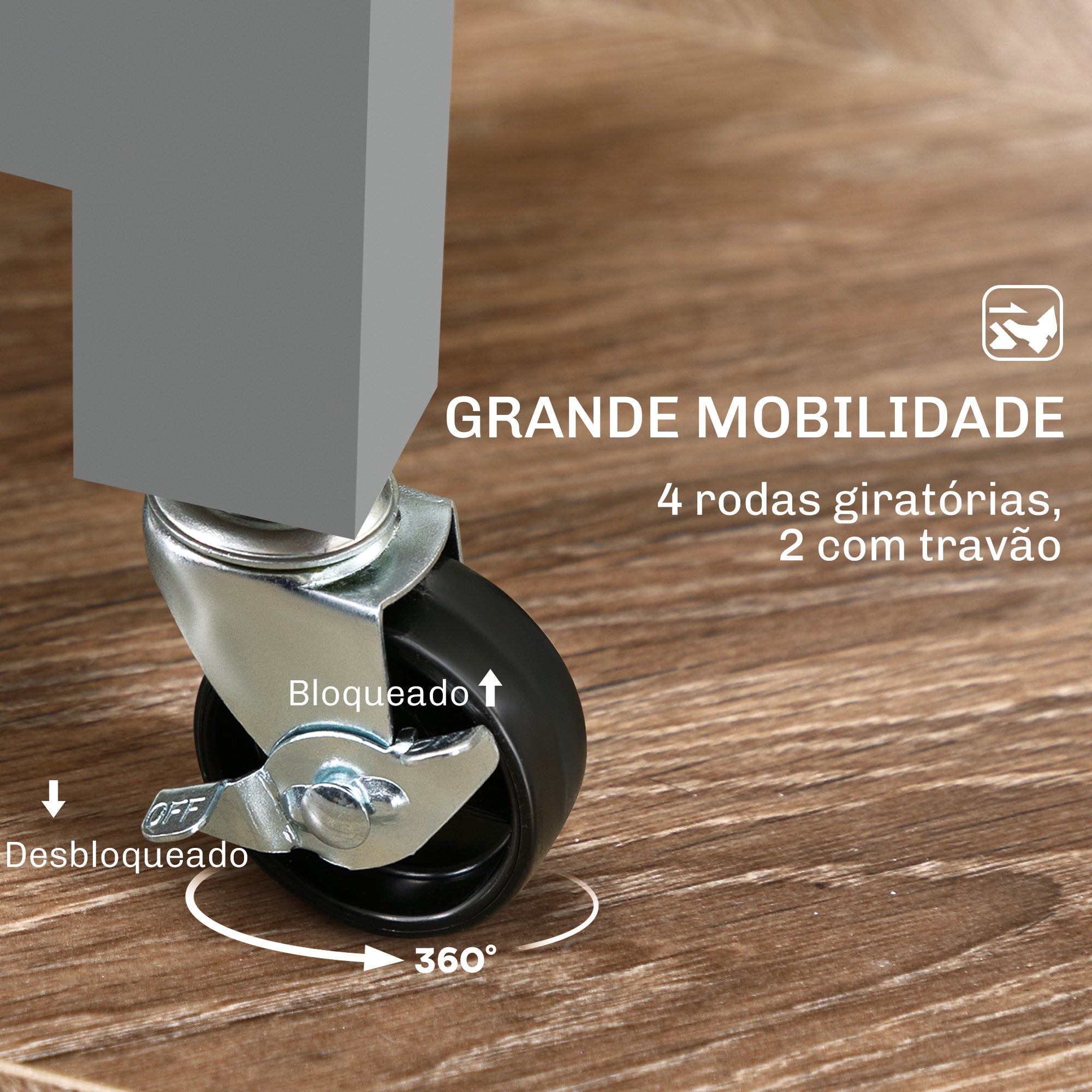 - Outras Especificações: 4 rodas giratórias, 2 com freio, capacidade máxima de peso: 40kg (total) e 3kg (prateleira/gaveta)