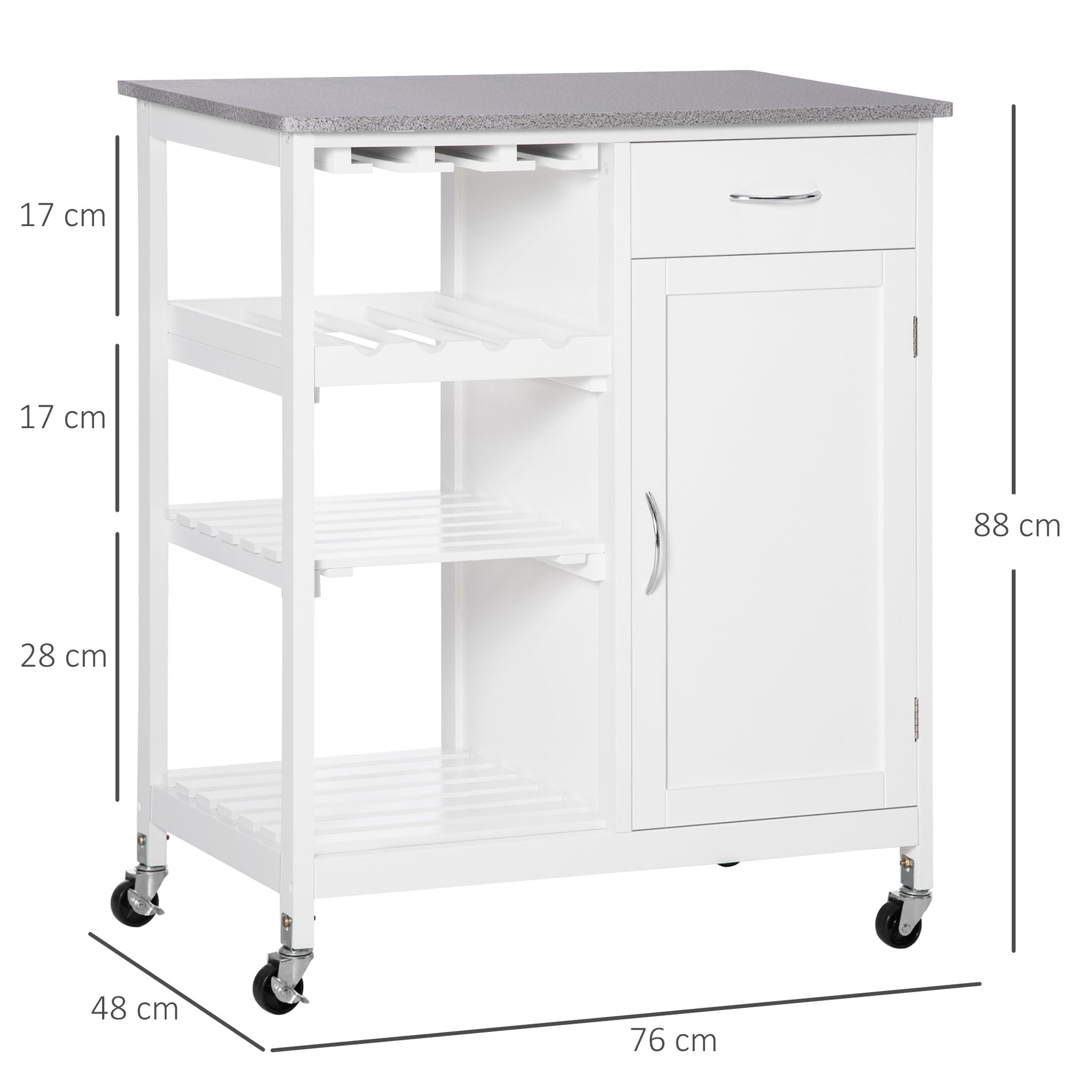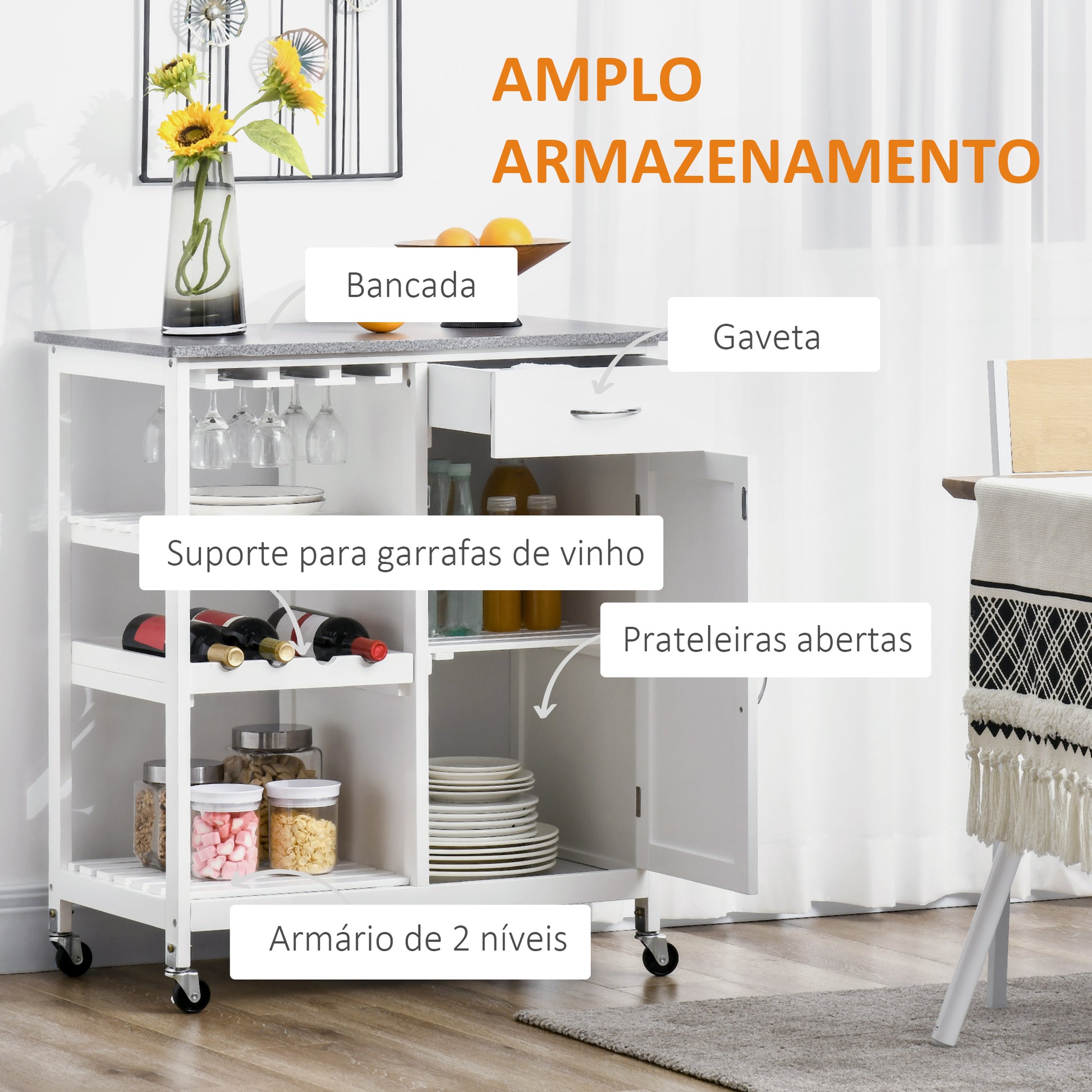 Carrinho de Cozinha com Rodas – 76x48x88cm – Branco – MDF