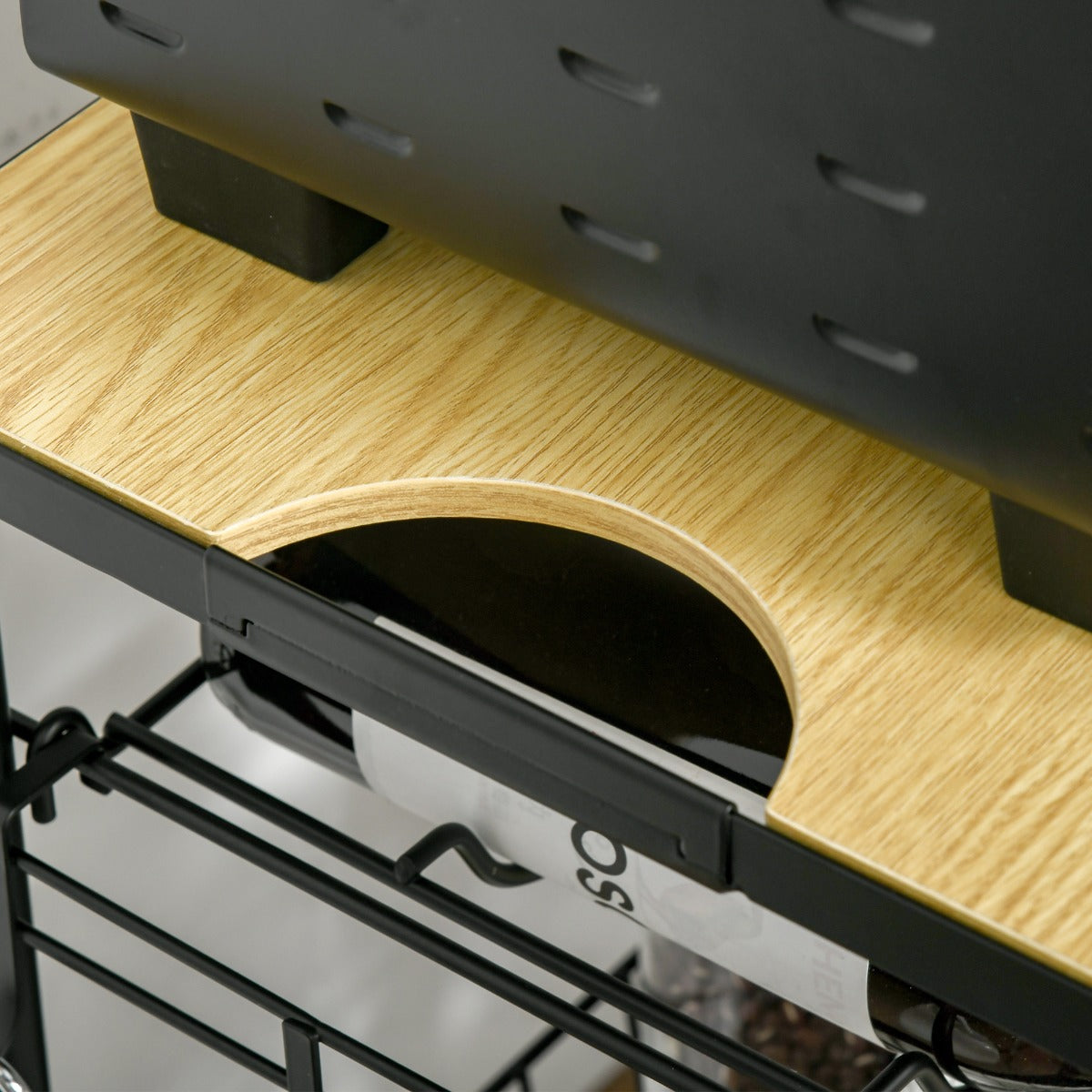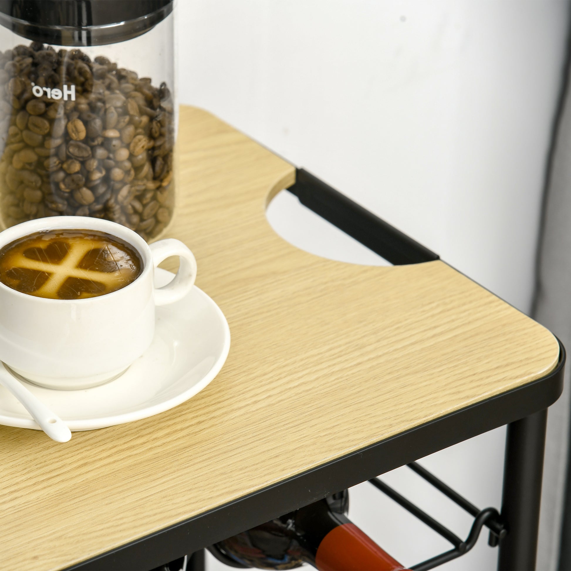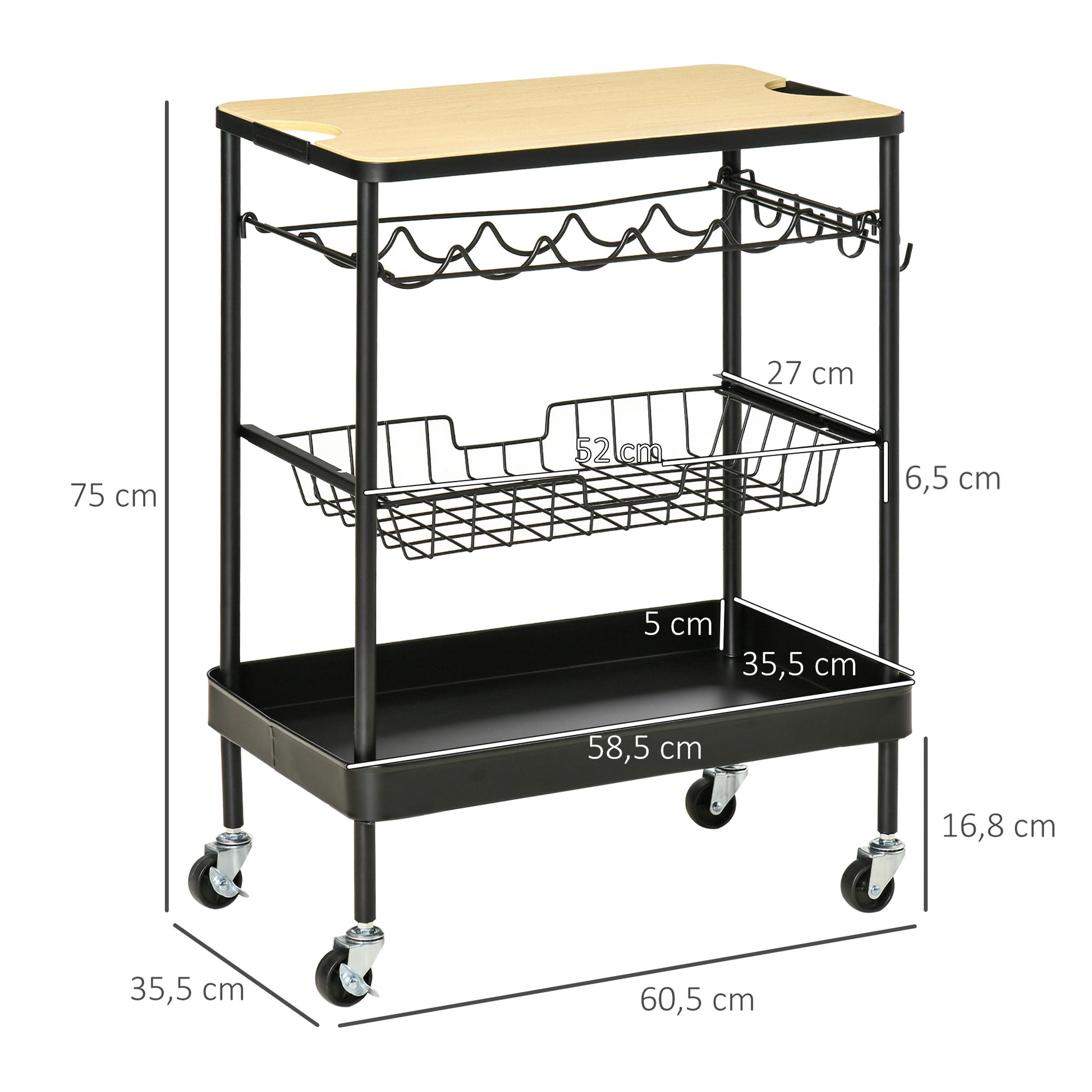 Carrinho de Cozinha Multiuso – 60.5x35.5x75cm – Preto e Carvalho – MDF e Aço