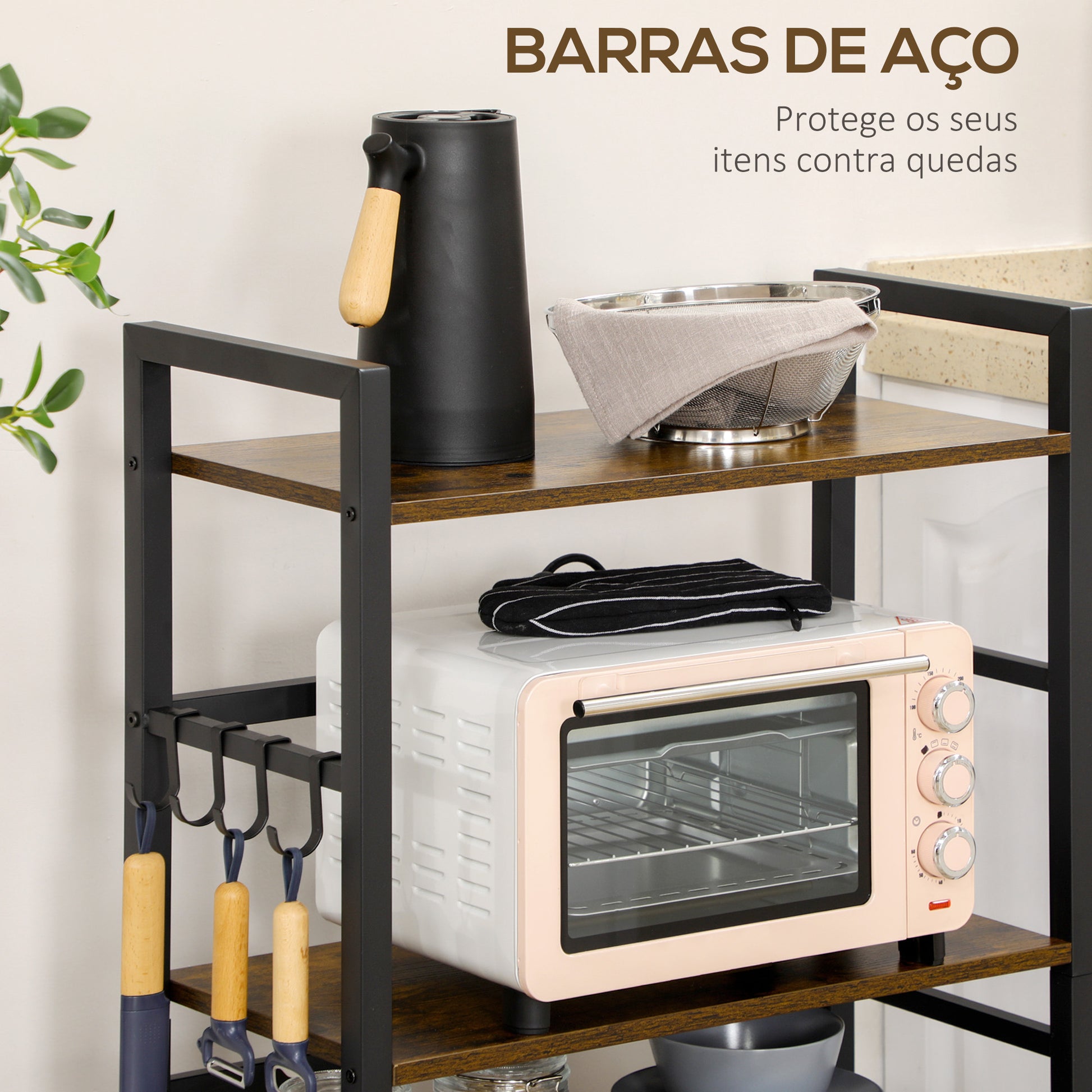 Organize a sua cozinha de forma eficiente e com estilo com esta estante de cozinha de 4 níveis em castanho rústico. Com amplo espaço de armazenamento e design industrial, esta estante é perfeita para diversos ambientes da casa.