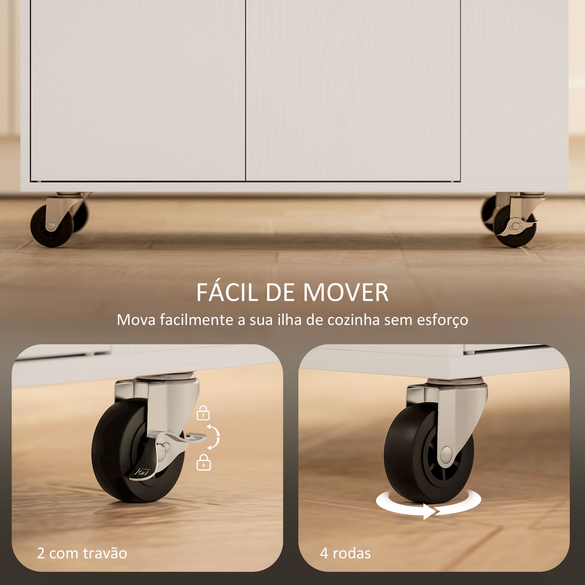- Benefícios: Gaveta deslizante, armário de dois níveis, prateleiras ajustáveis, e rodas universais para fácil deslocamento.