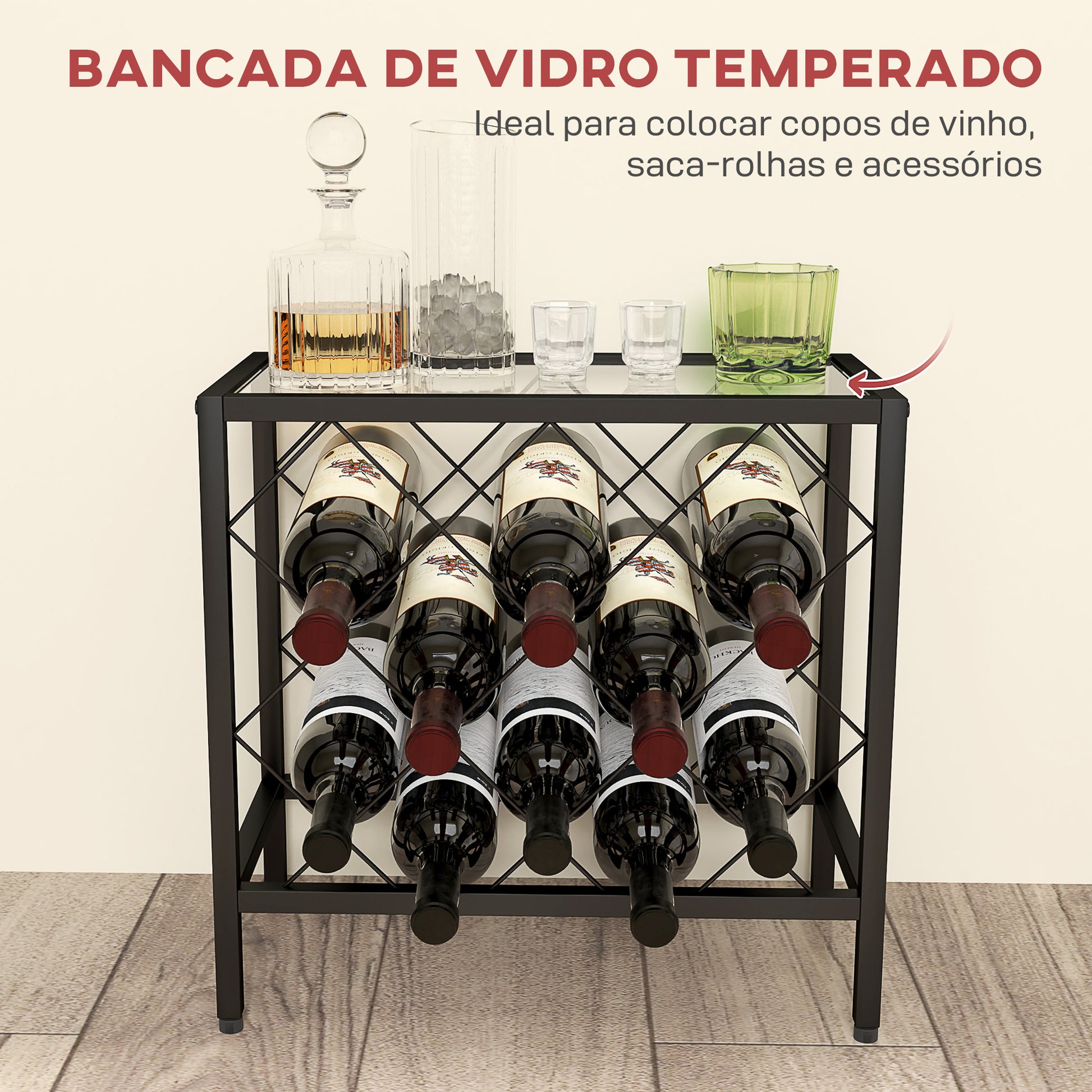 Suporte para Garrafas de Vinho Preto 41x22x41 cm - Bancada em Vidro Temperado