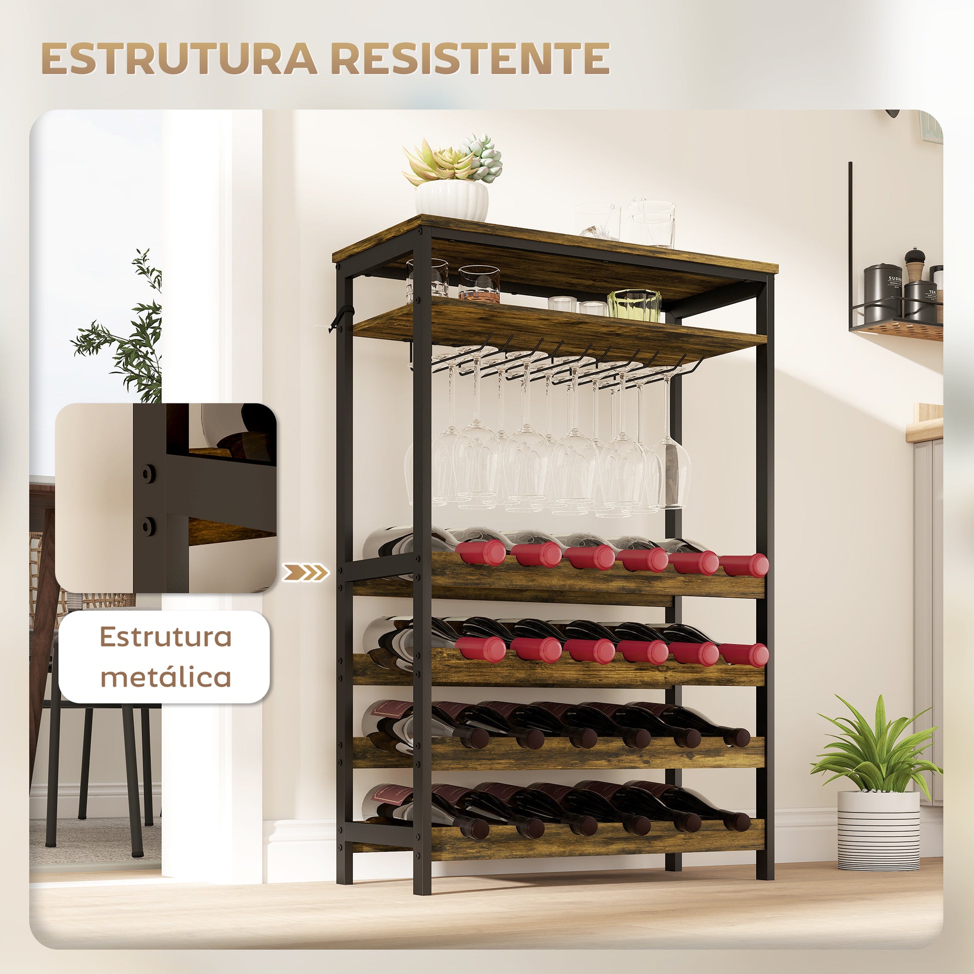 O Suporte para Vinho para 24 Garrafas é o móvel perfeito para os amantes de vinho que desejam otimizar o espaço de armazenamento. Com um design industrial elegante em castanho rústico, este suporte oferece funcionalidade e estilo para a sua sala de estar ou sala de jantar.