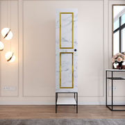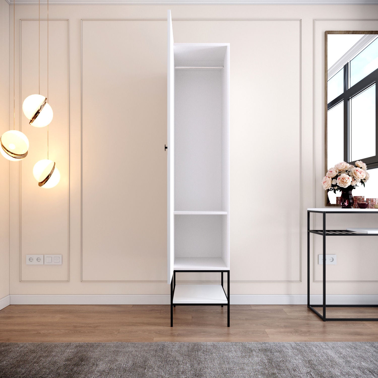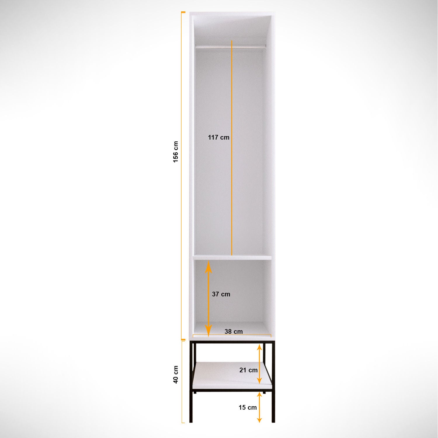 Guarda-roupa de Painel de Partículas – 42cm x 200cm x 50cm – Branco, Preto e Dourado – Painéis de Partículas Revestidos a Melamina
