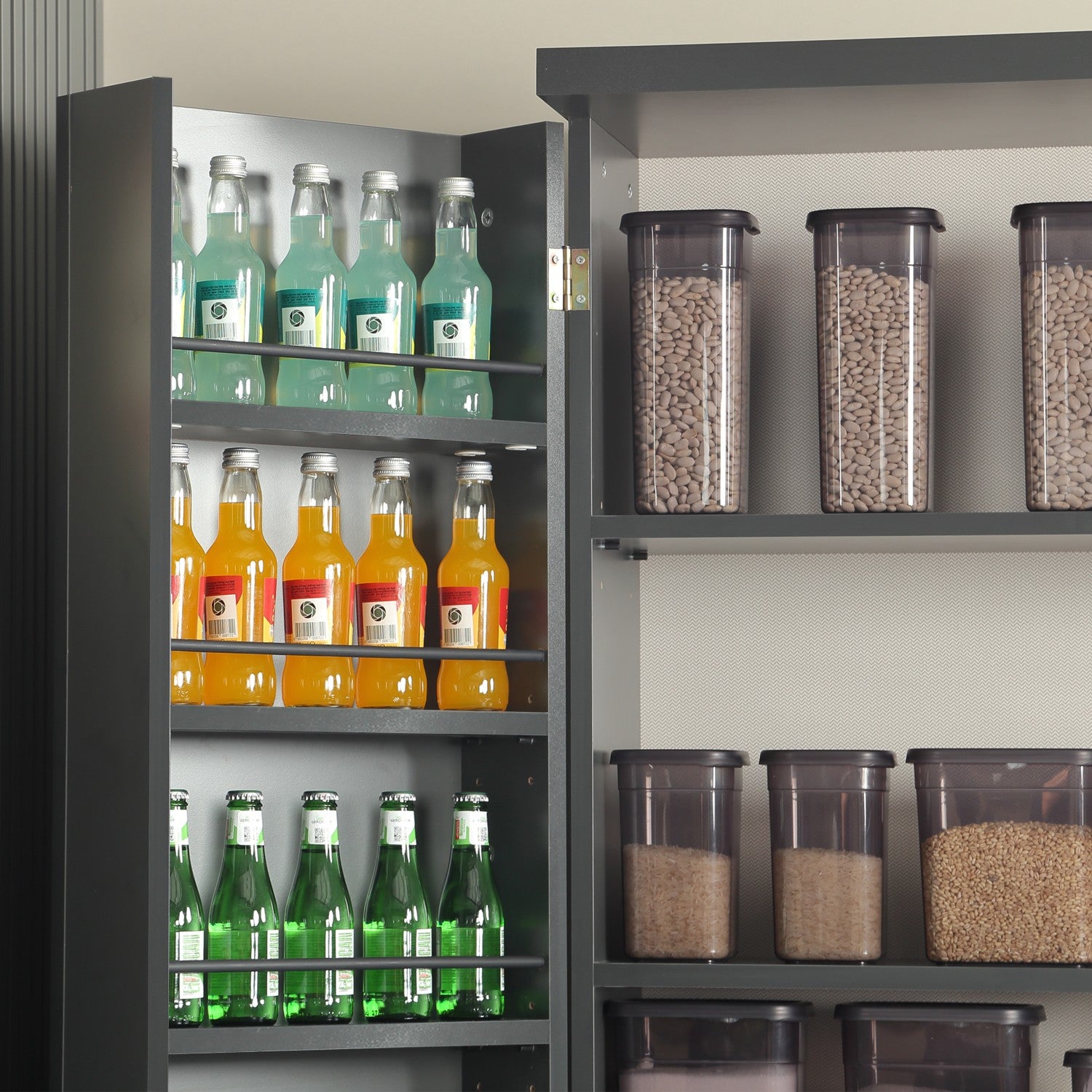 Com inúmeras prateleiras e opções de arrumação adicionais, pode finalmente ter um lugar para tudo em sua casa. Diga adeus às bancadas desordenadas e ao chão desarrumado - este armário manterá os seus pertences limpos e arrumados.