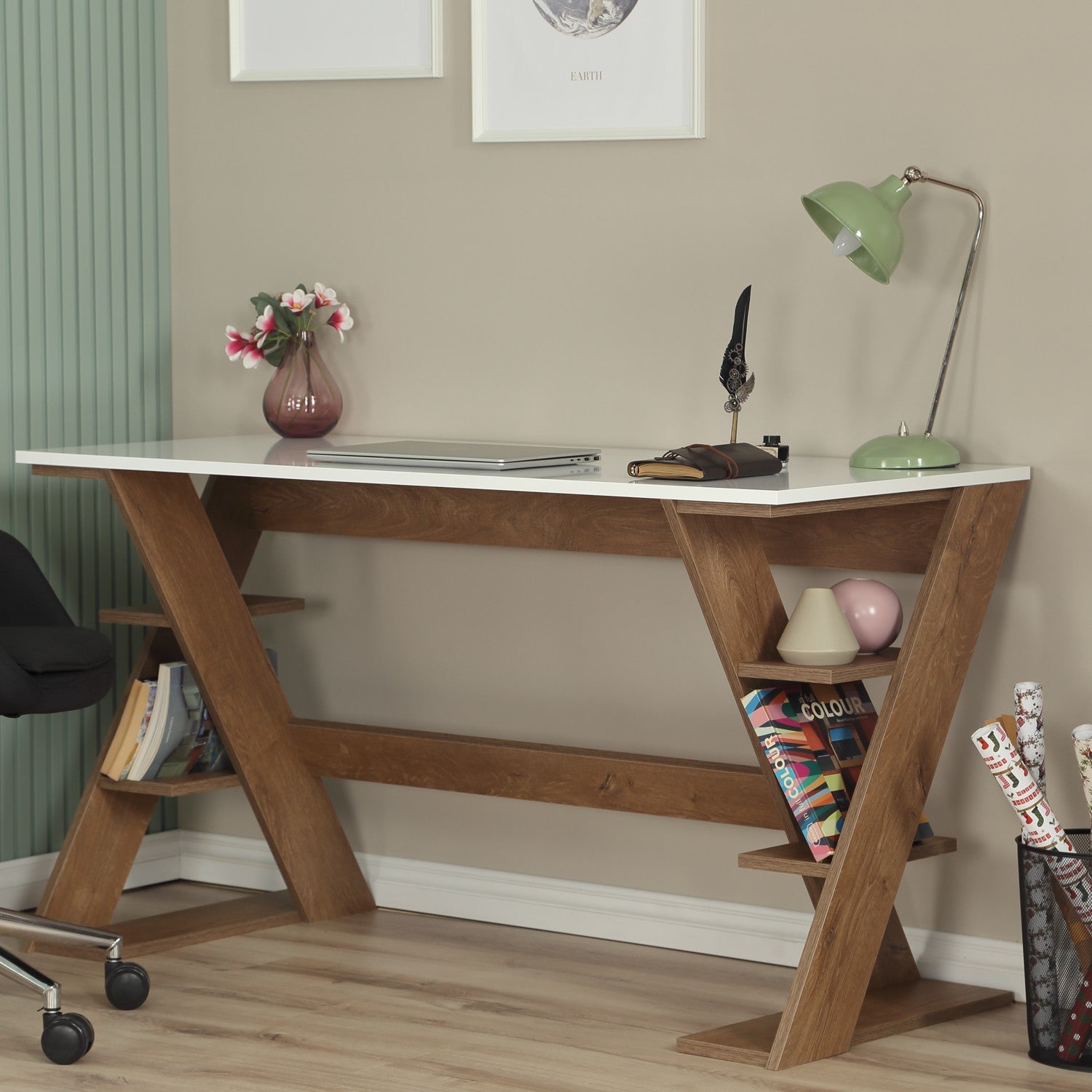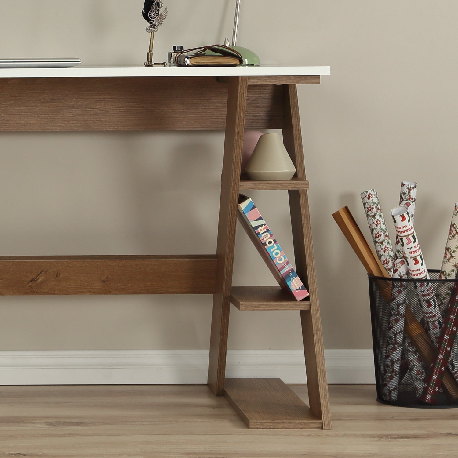 Secretária de Estudo - 140 cm x 73 cm x 60 cm - Carvalho Escuro e Branco - Aglomerado