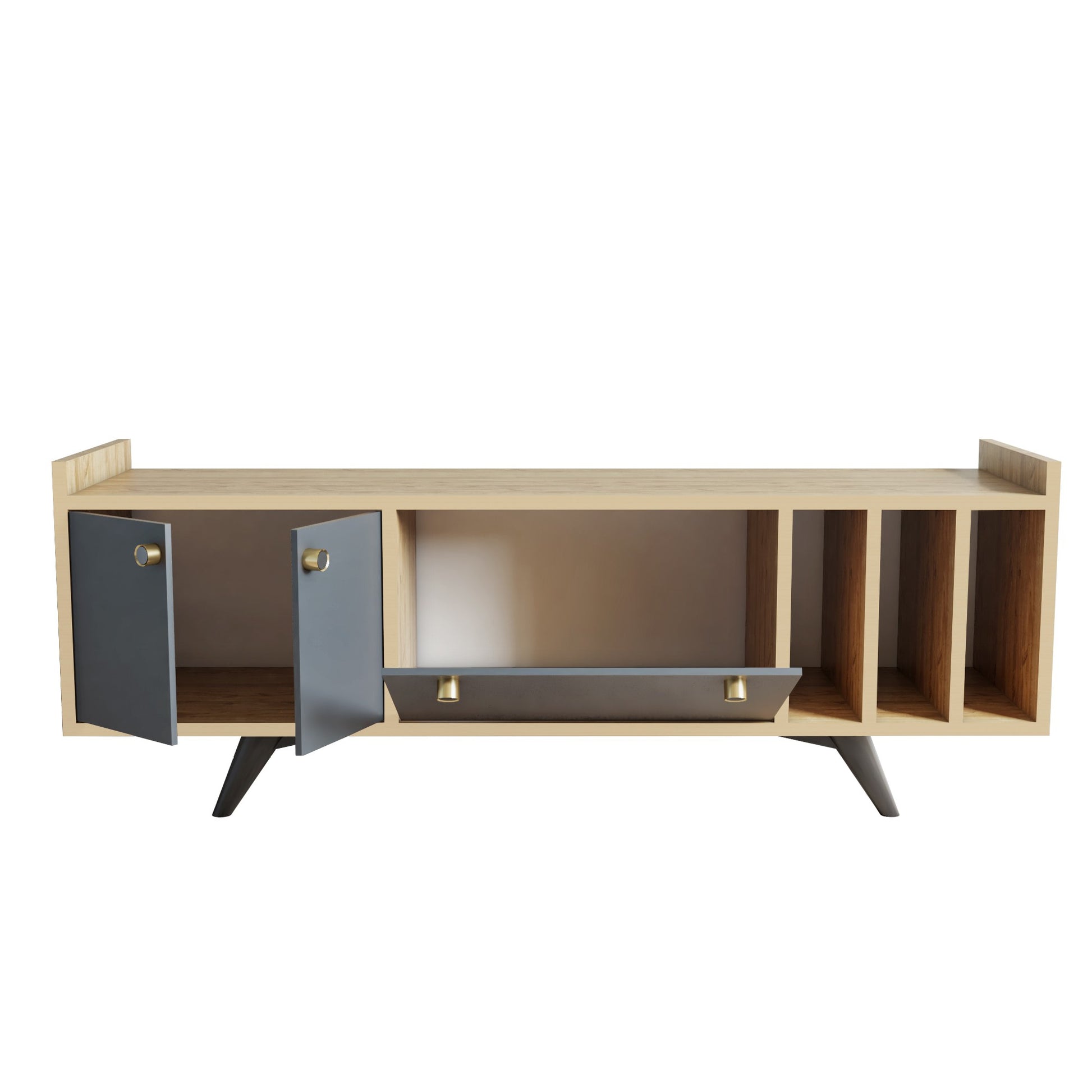 Móvel de TV – 150 cm x 40 cm x 62 cm – Antracite e Carvalho – Painel de partículas revestido a melamina