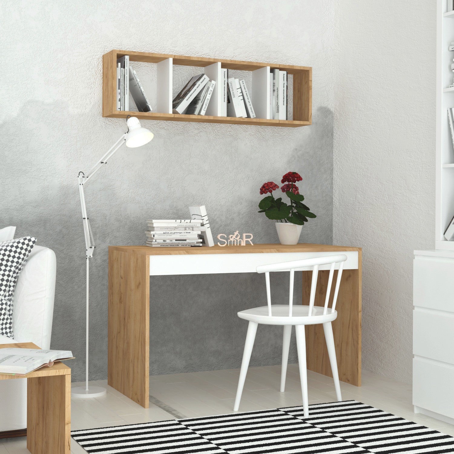 Para além da secretária de estudo, este conjunto também inclui uma prateleira de parede que pode ser fixada à parede. Isto permite-lhe tirar o máximo partido do seu espaço vertical, proporcionando arrumação adicional para livros, artigos de papelaria ou artigos decorativos. A prateleira de parede mede 120 cm de largura, 33. 6 cm de altura e 20 cm de profundidade, oferecendo um espaço amplo para todos os seus objectos essenciais.