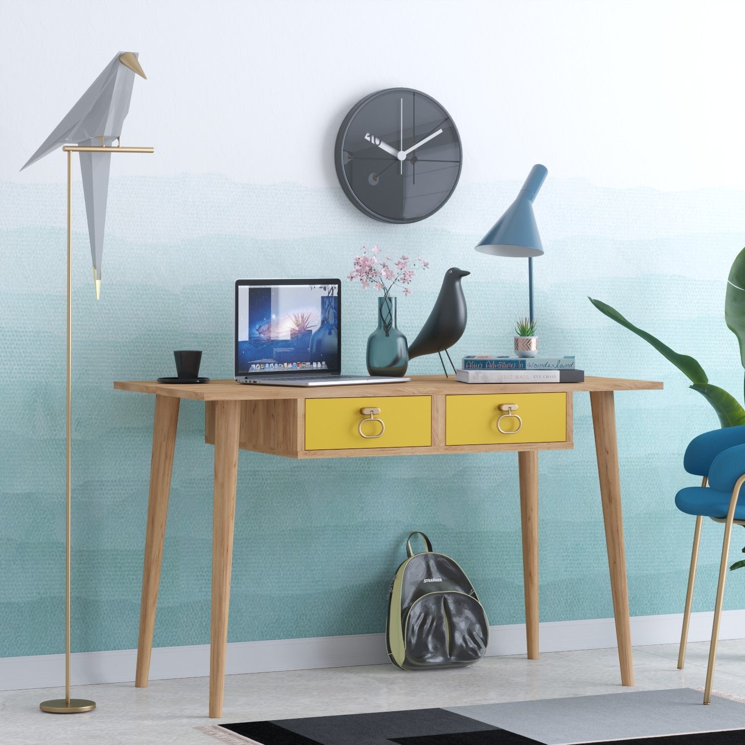 Com o seu design elegante e contemporâneo, a nossa secretária de estudo transformará instantaneamente a sua área de estudo num espaço que inspira criatividade e produtividade. A combinação das cores carvalho e amarelo dá um toque vibrante e refrescante, tornando o estudo uma experiência mais agradável.
