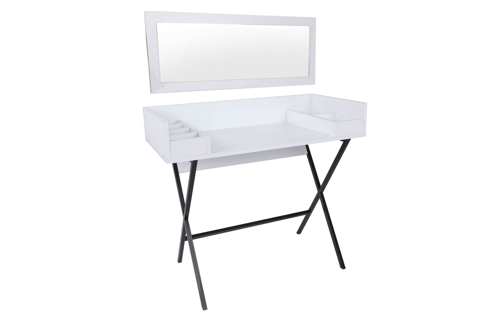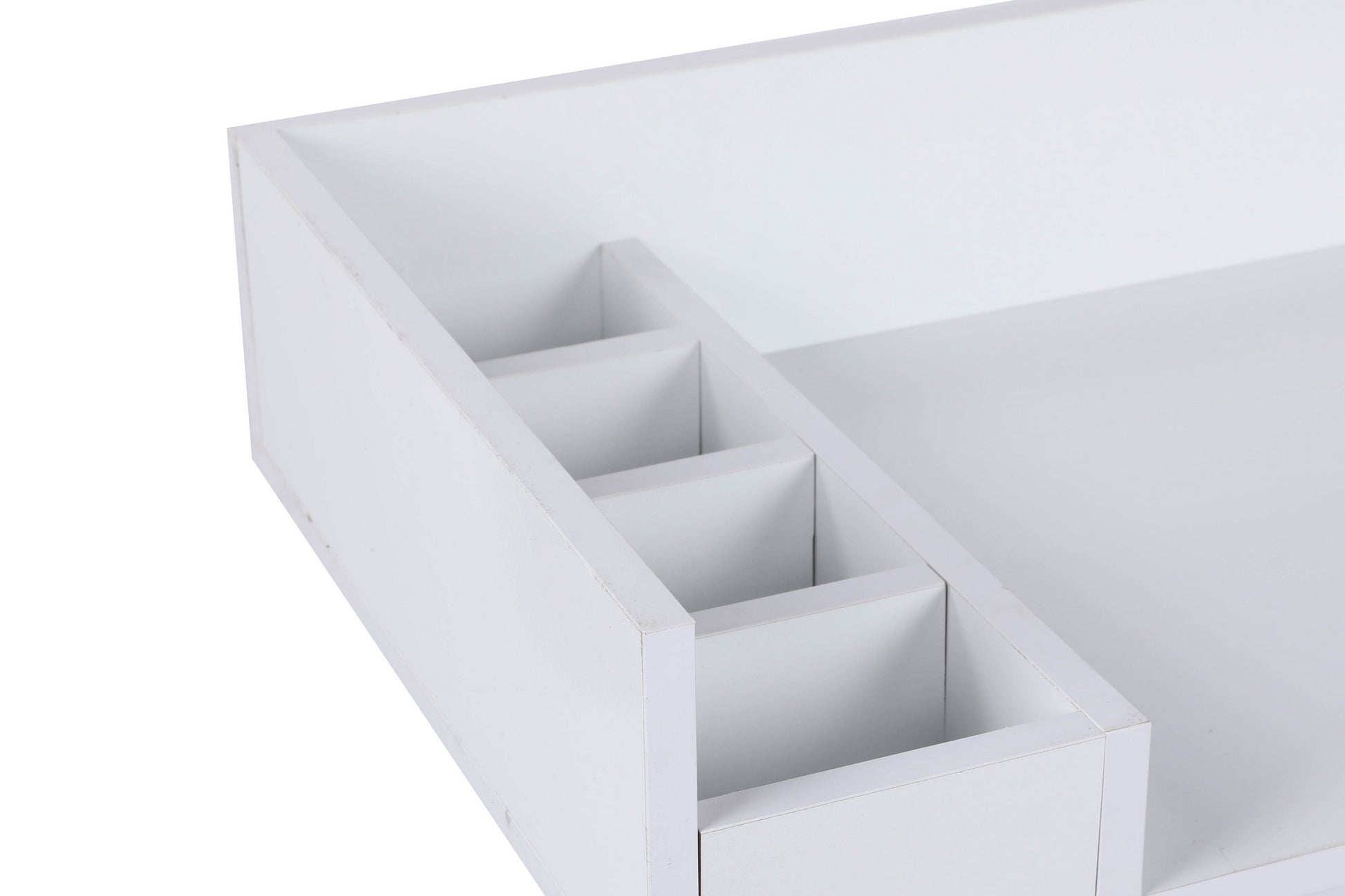 A nossa mesa de maquilhagem apresenta um conceito de cores sólidas com um toque moderno e inovador. A combinação das cores branca e preta cria um aspeto elegante e sofisticado que complementa qualquer estilo de decoração.