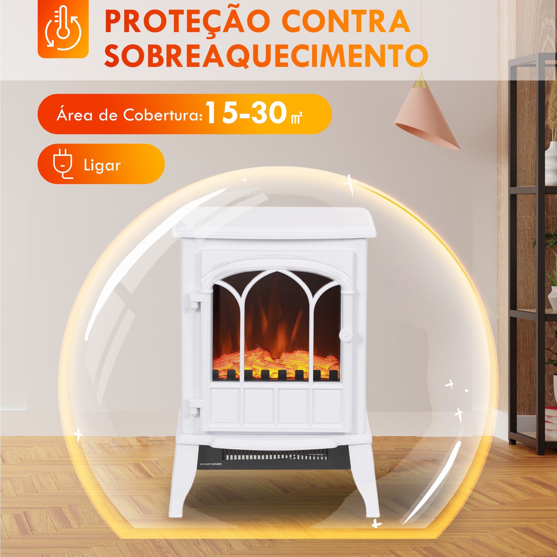 - Benefícios: Efeito de chama realista, ajuste de temperatura e brilho, segurança com sistema de corte térmico