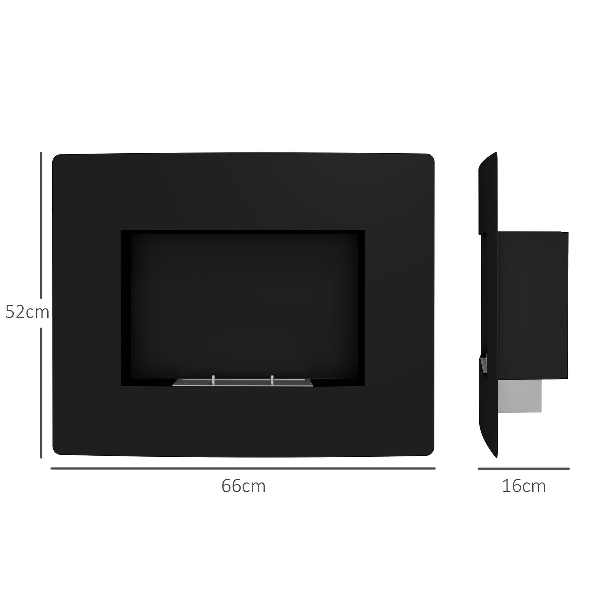 Lareira de Bioetanol de Parede 66x16x52 cm - Cor Preto