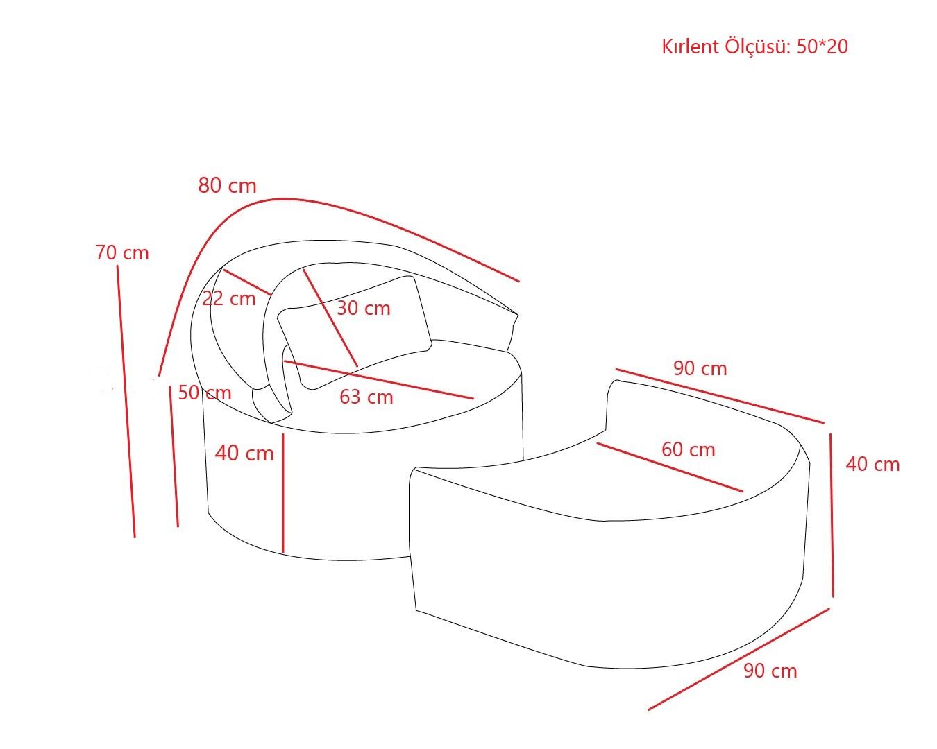 - Puff: Largura: 90 cm, Altura: 40 cm, Profundidade: 90 cm (1 Peça)