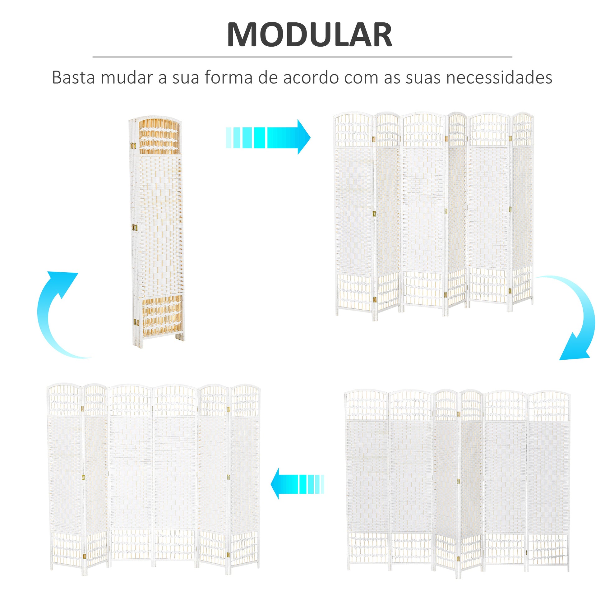 Biombo de 6 Painéis Branco 242x170cm - Separador de Ambientes Elegante