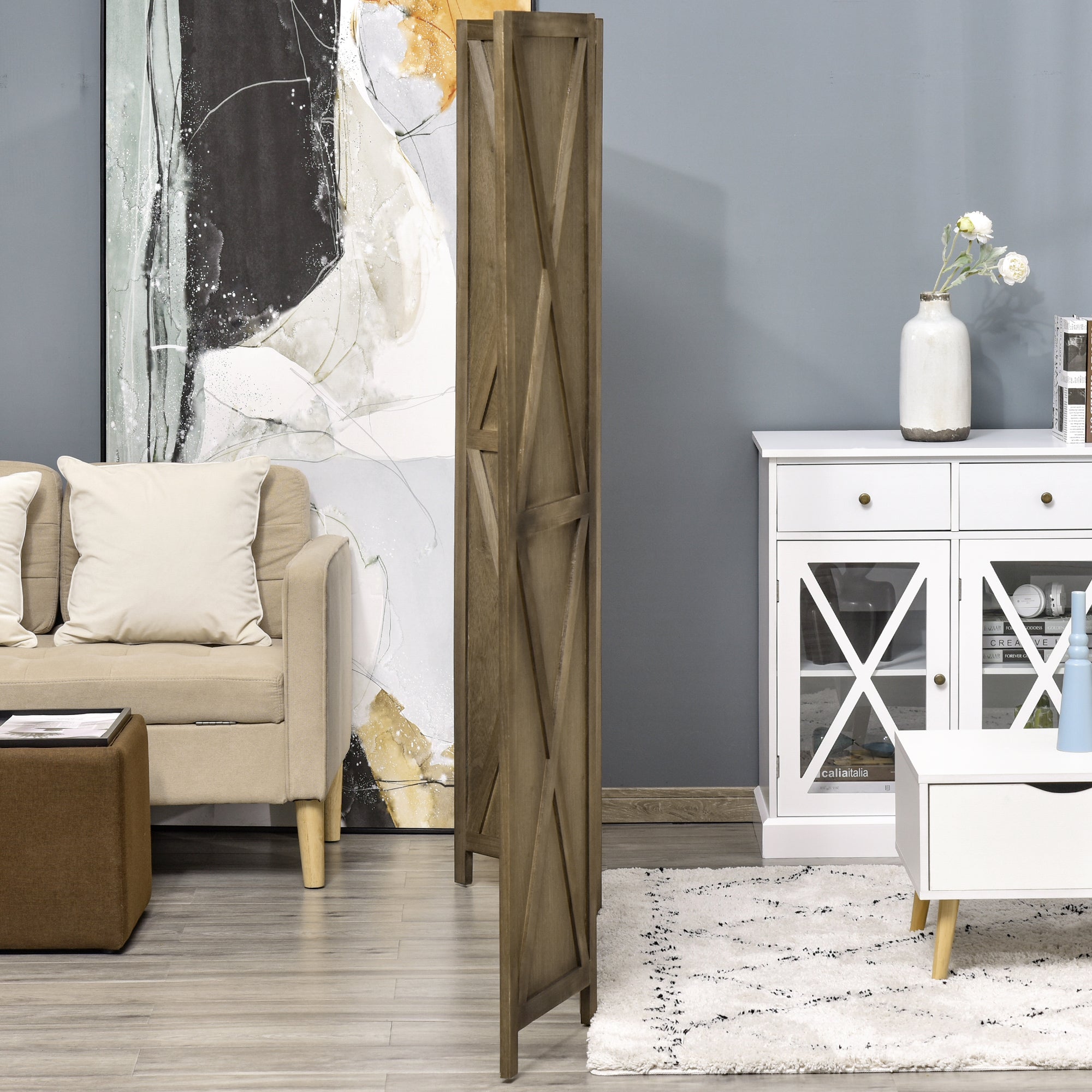 Biombo de 4 Painéis Separador de Ambientes 182x170 cm - Marrom Acinzentado