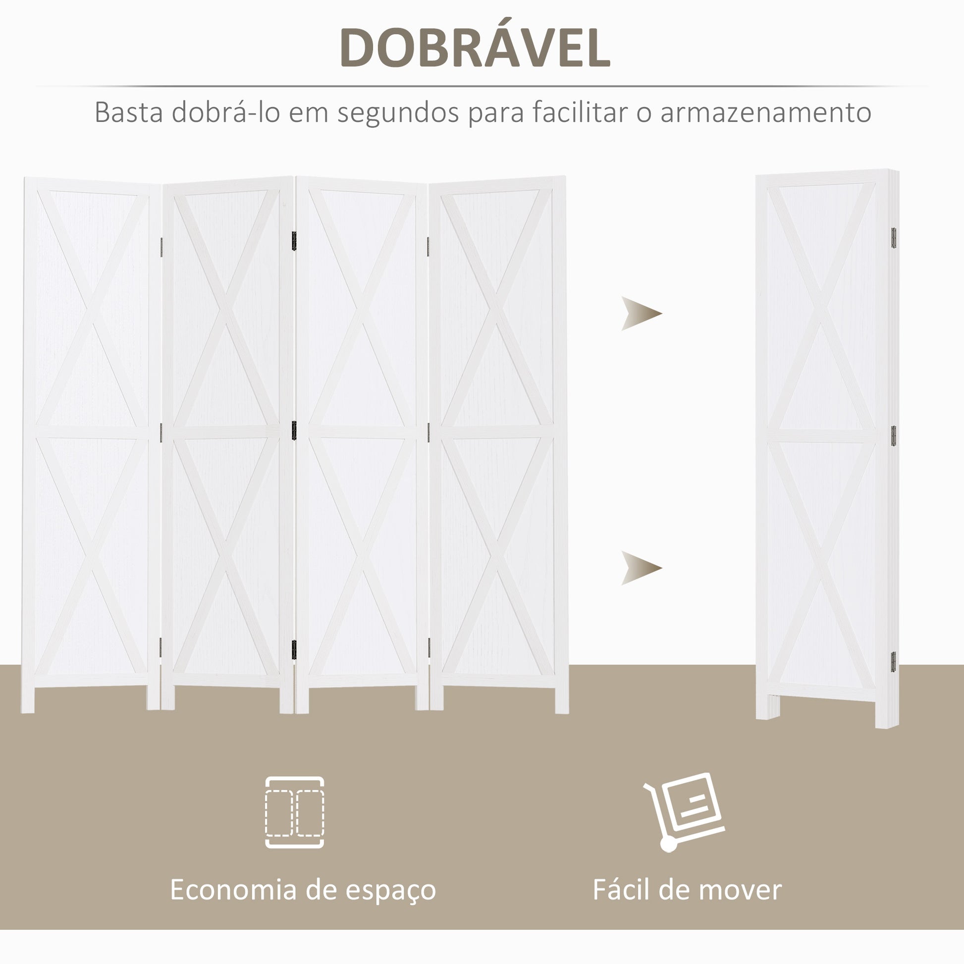 Biombo de 4 Painéis – 182x1.8x170 cm – Branco – Madeira Paulownia
