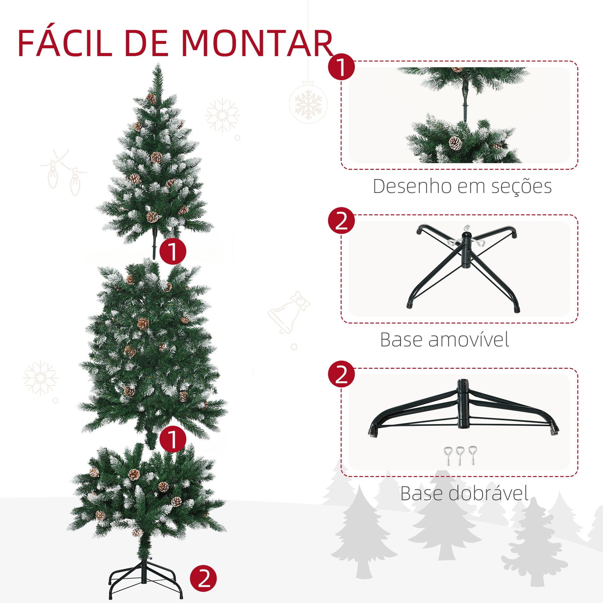 Esta árvore de Natal artificial de 180 cm com aspecto nevado e pinhas decorativas oferece um ambiente natalício perfeito para a sua casa. Com 508 ramos fáceis de configurar, fabricada em seções para facilitar a montagem, desmontagem e armazenamento.