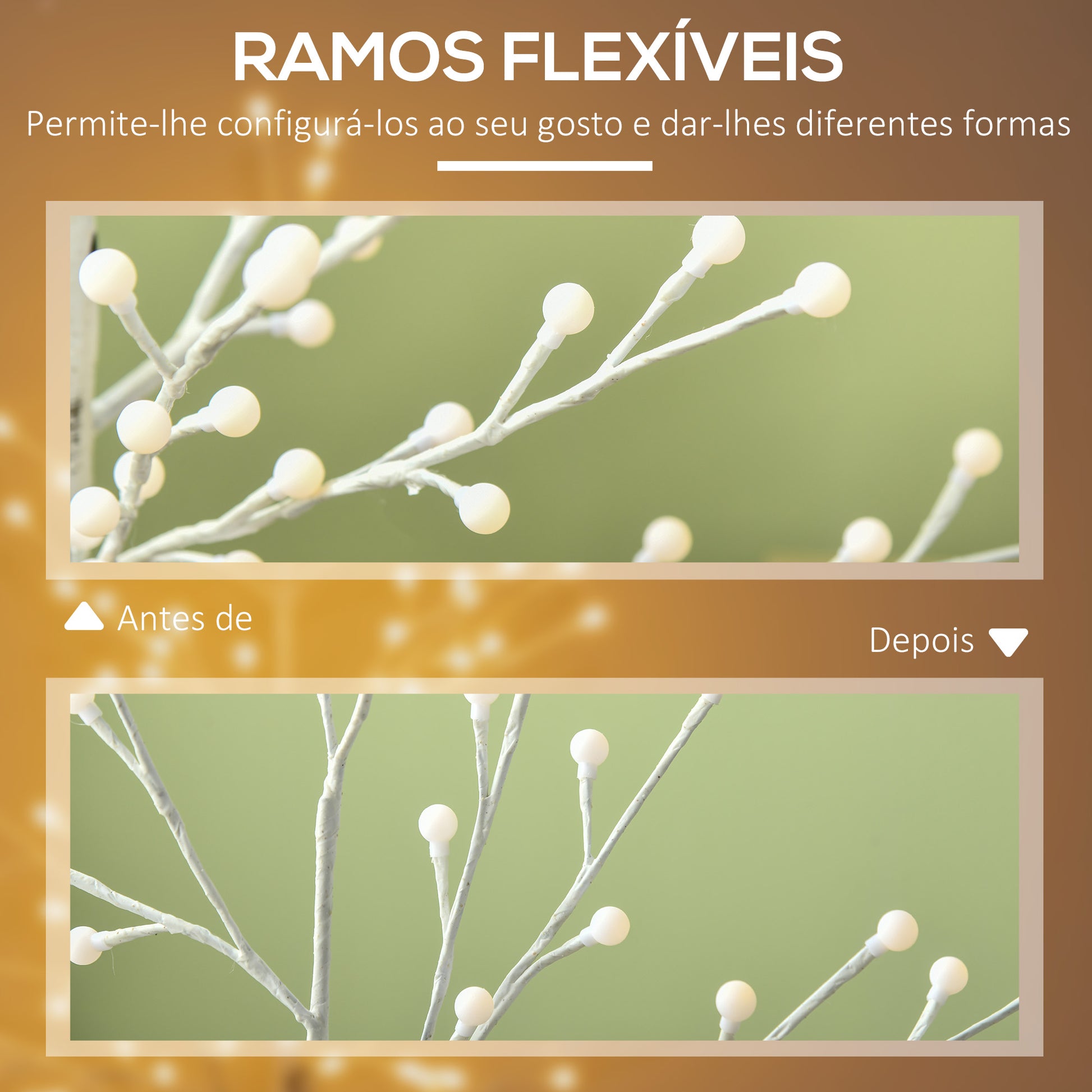 - Benefícios: Design flexível com ramos dobráveis para decoração personalizada.