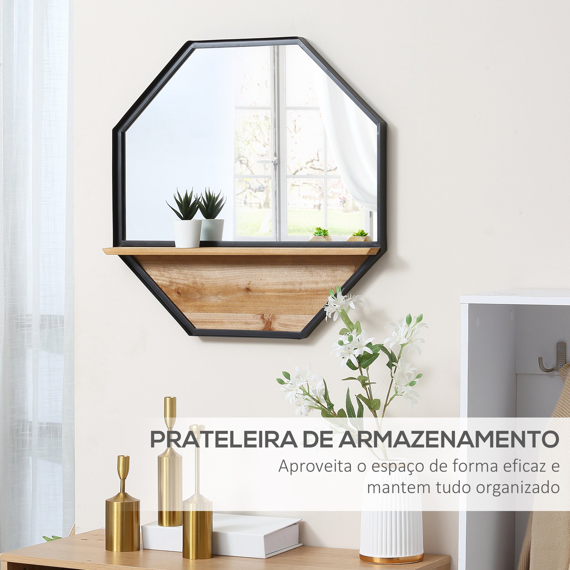 - Outras especificações: Espelho de vidro resistente, estrutura metálica, prateleira de madeira de abeto
