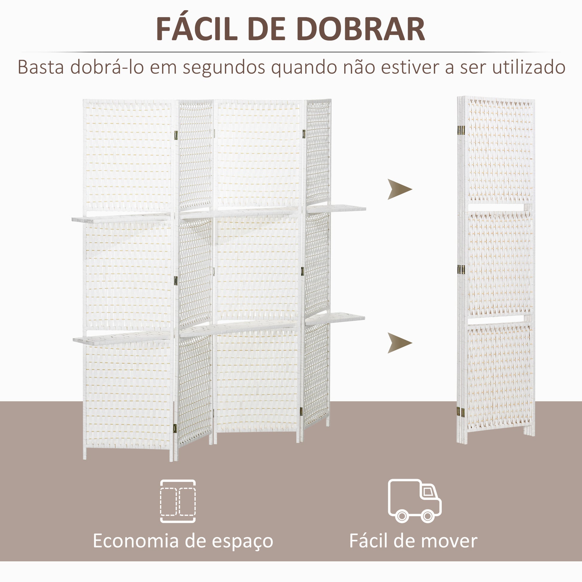 Dê um toque elegante e rústico à sua casa com este Biombo Divisor de Ambientes branco, feito com materiais naturais e design funcional.