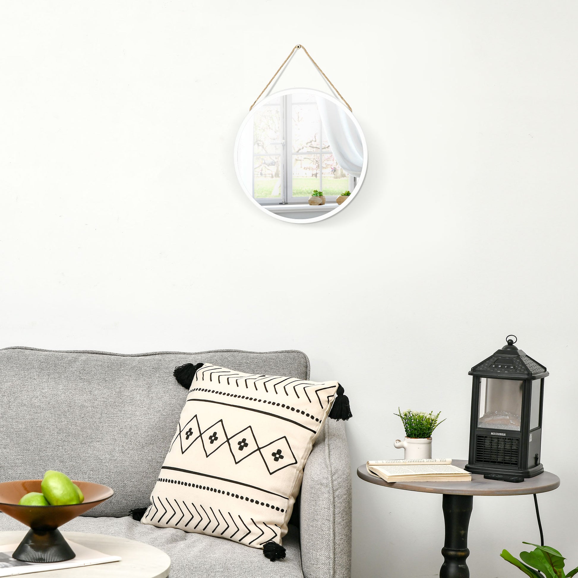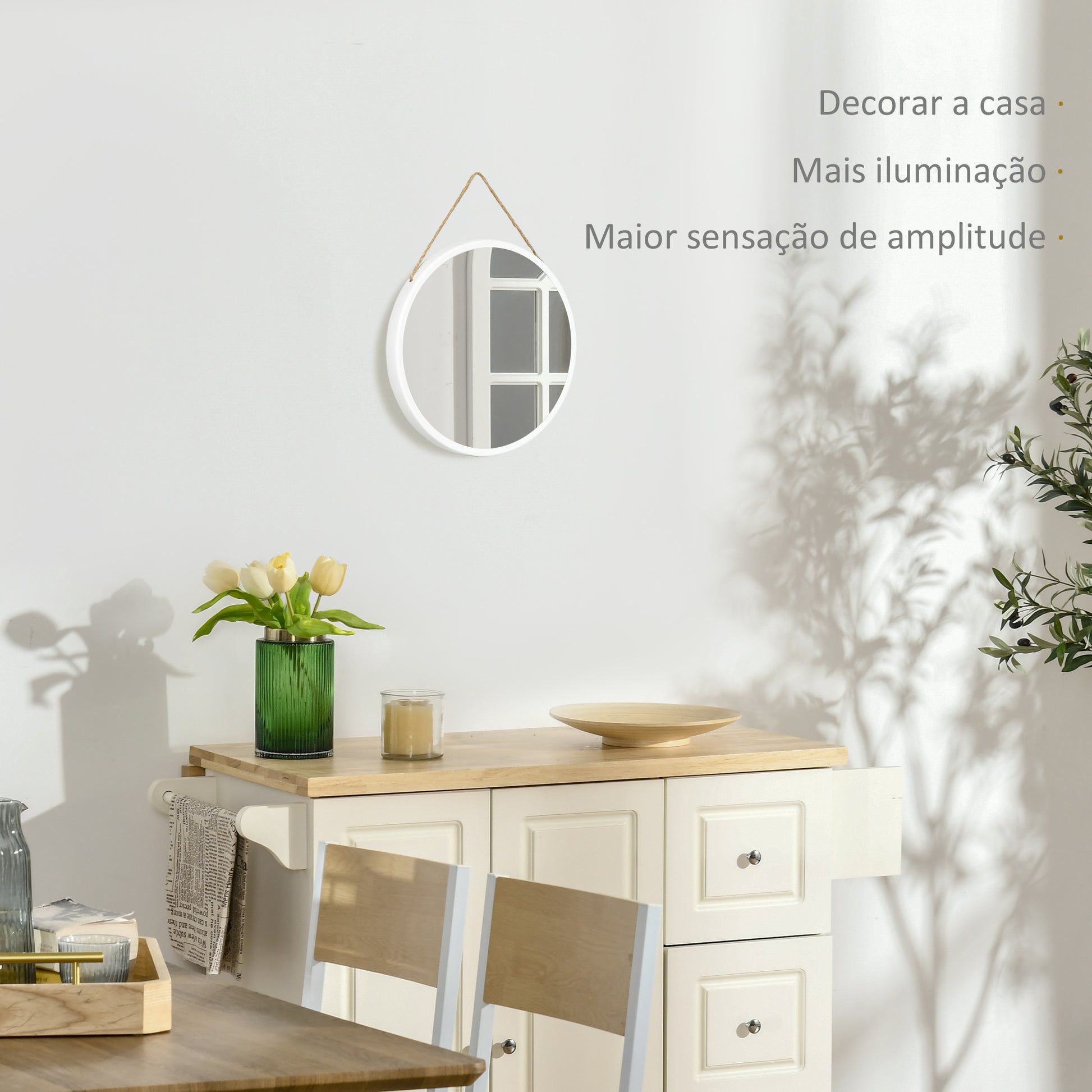 Este elegante espelho redondo de parede com moldura branca é a peça decorativa perfeita para iluminar e ampliar qualquer ambiente da sua casa.