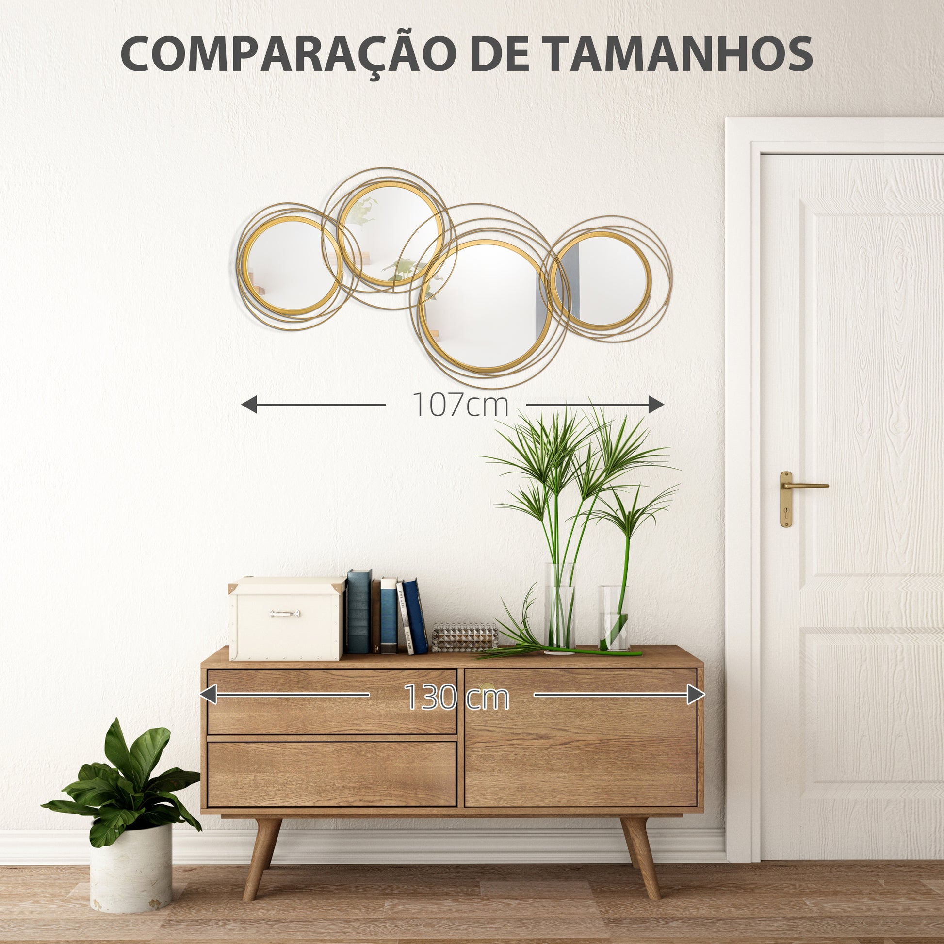 Decoração de Parede Metal 3D Espelhos Redondos Dourado 107x56cm
