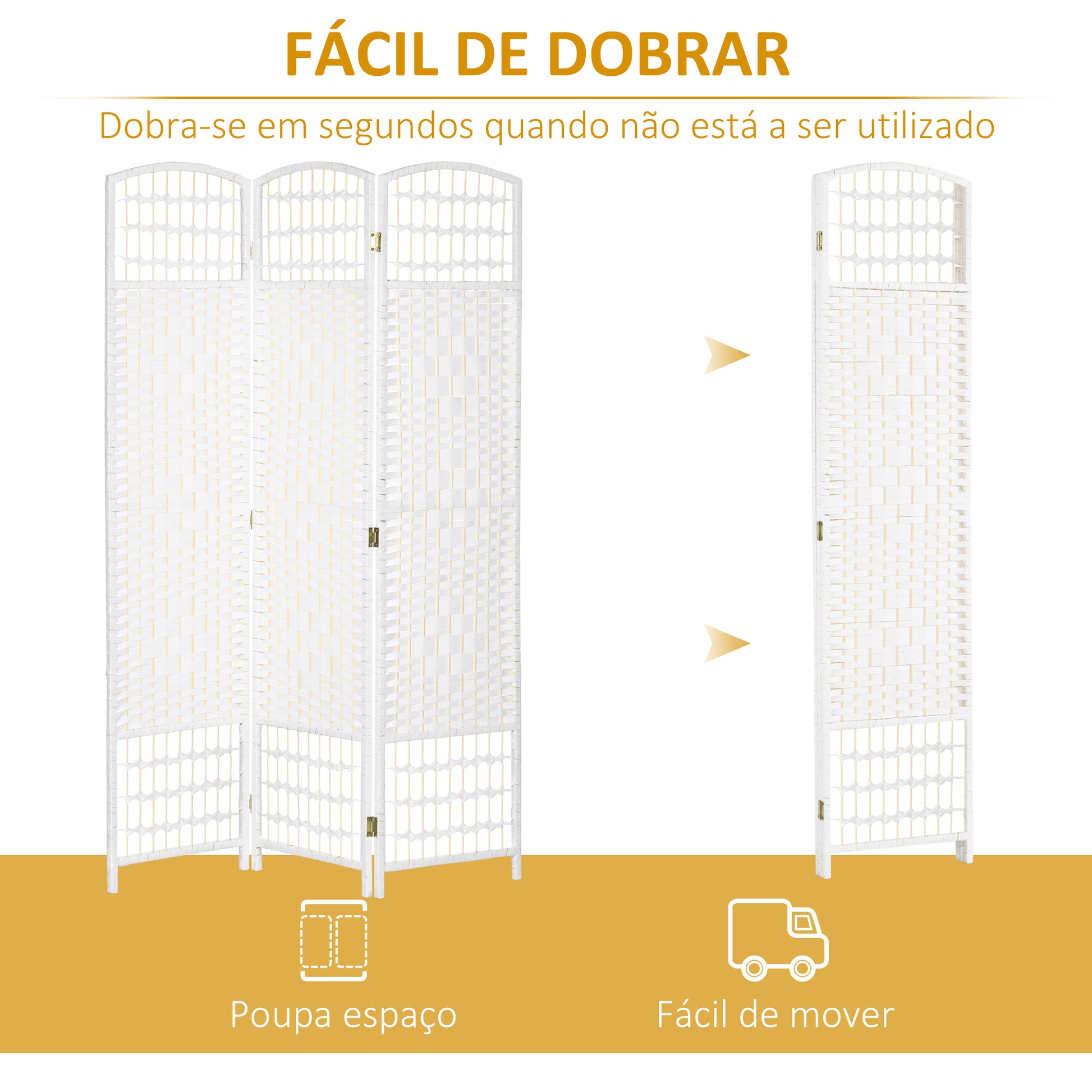 Biombo Separador de Ambientes – 120x170 cm – Branco – Madeira de álamo, bambu, corda de papel