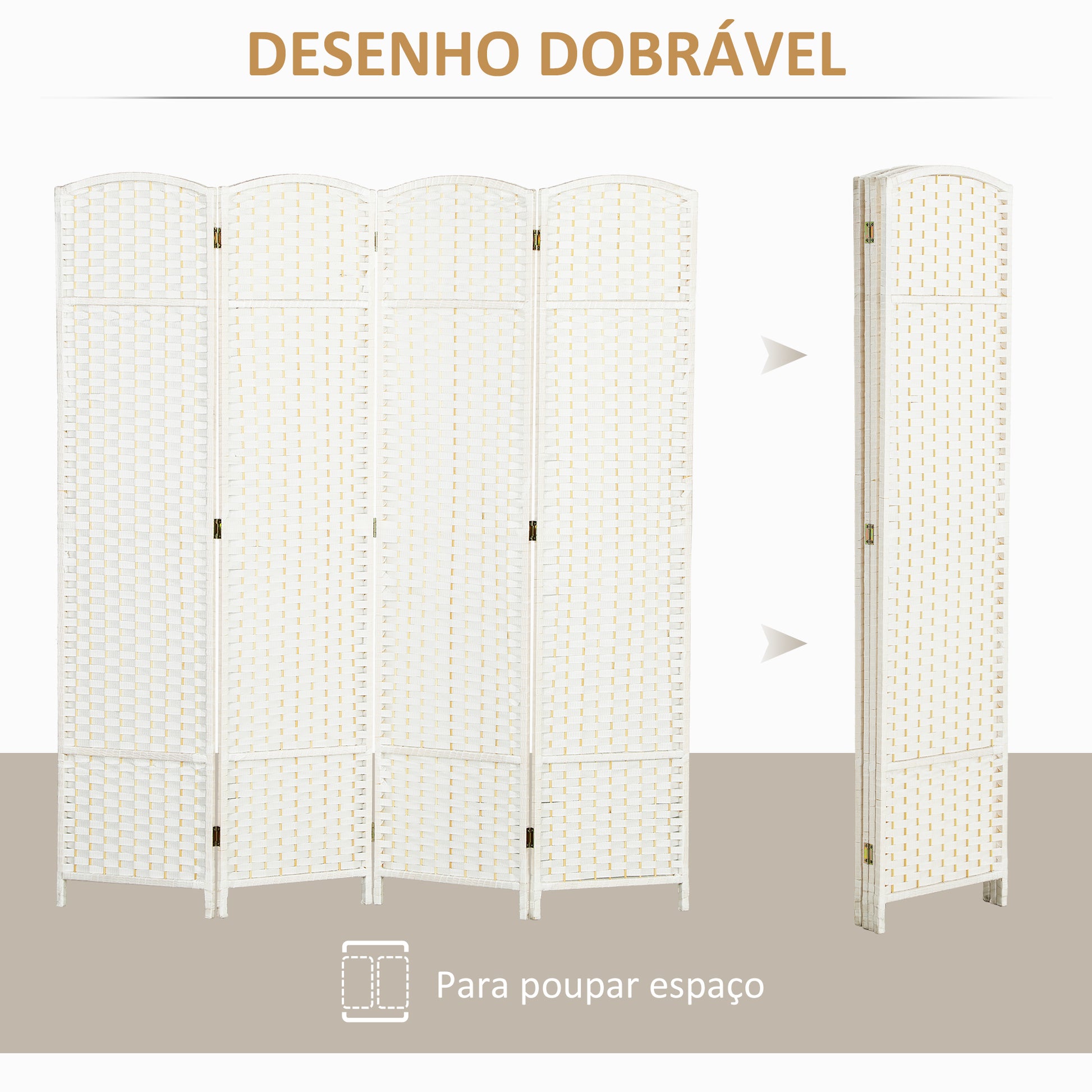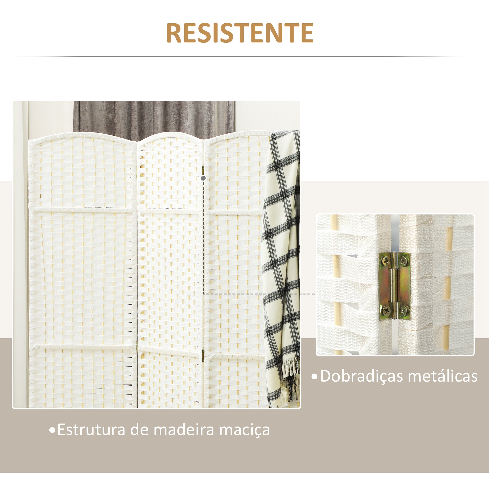 Biombo Separador de Ambientes – 160x170 cm – Branco – Madeira de Pinho e Polipropileno