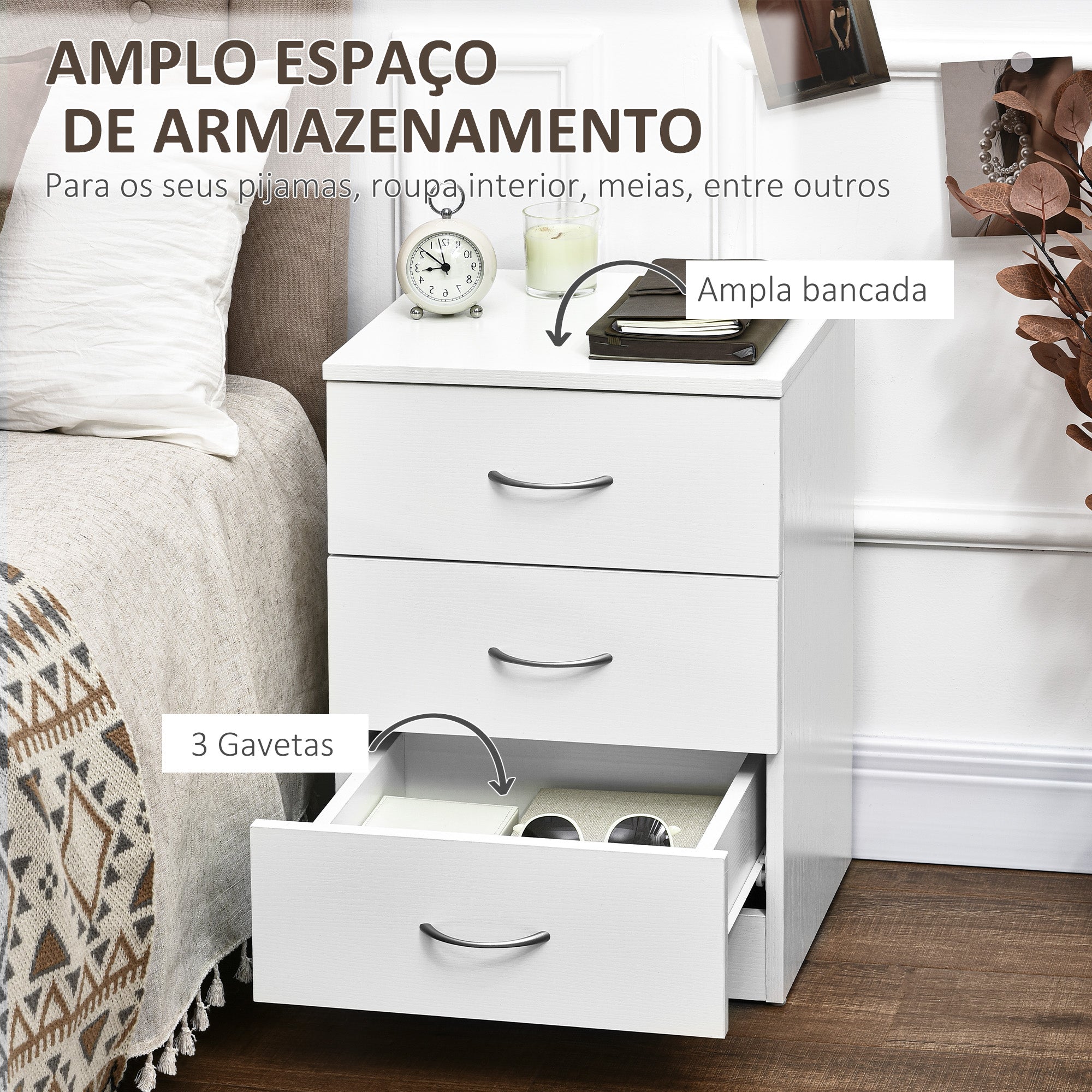 - Benefícios: 3 gavetas deslizantes oferecem amplo espaço de armazenamento. Puxadores de alumínio facilitam a abertura e fecho das gavetas.