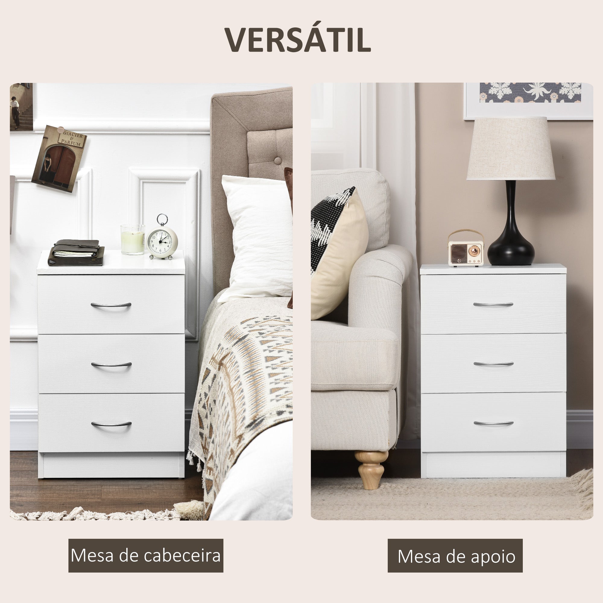 Mesa de Cabeceira Moderna com 3 Gavetas – 40x35x58 cm – Branco – Melamina