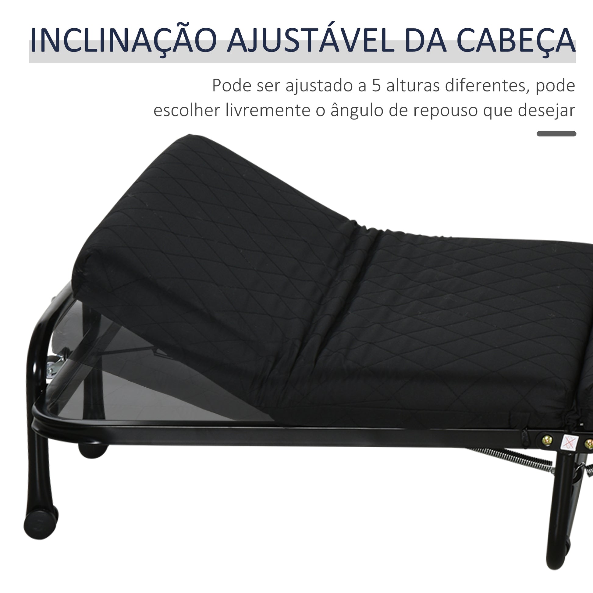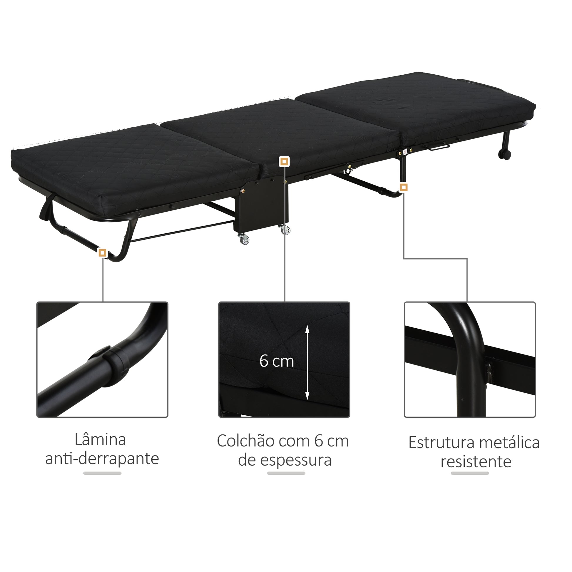 Cama Dobrável – 184x65 cm – Preto – Metal