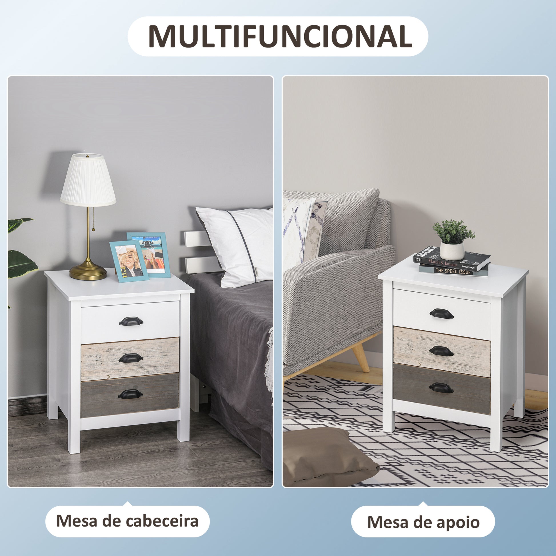 Mesa de Cabeceira Moderna – 50x38x65 cm – Multicor – MDF e madeira de pinho
