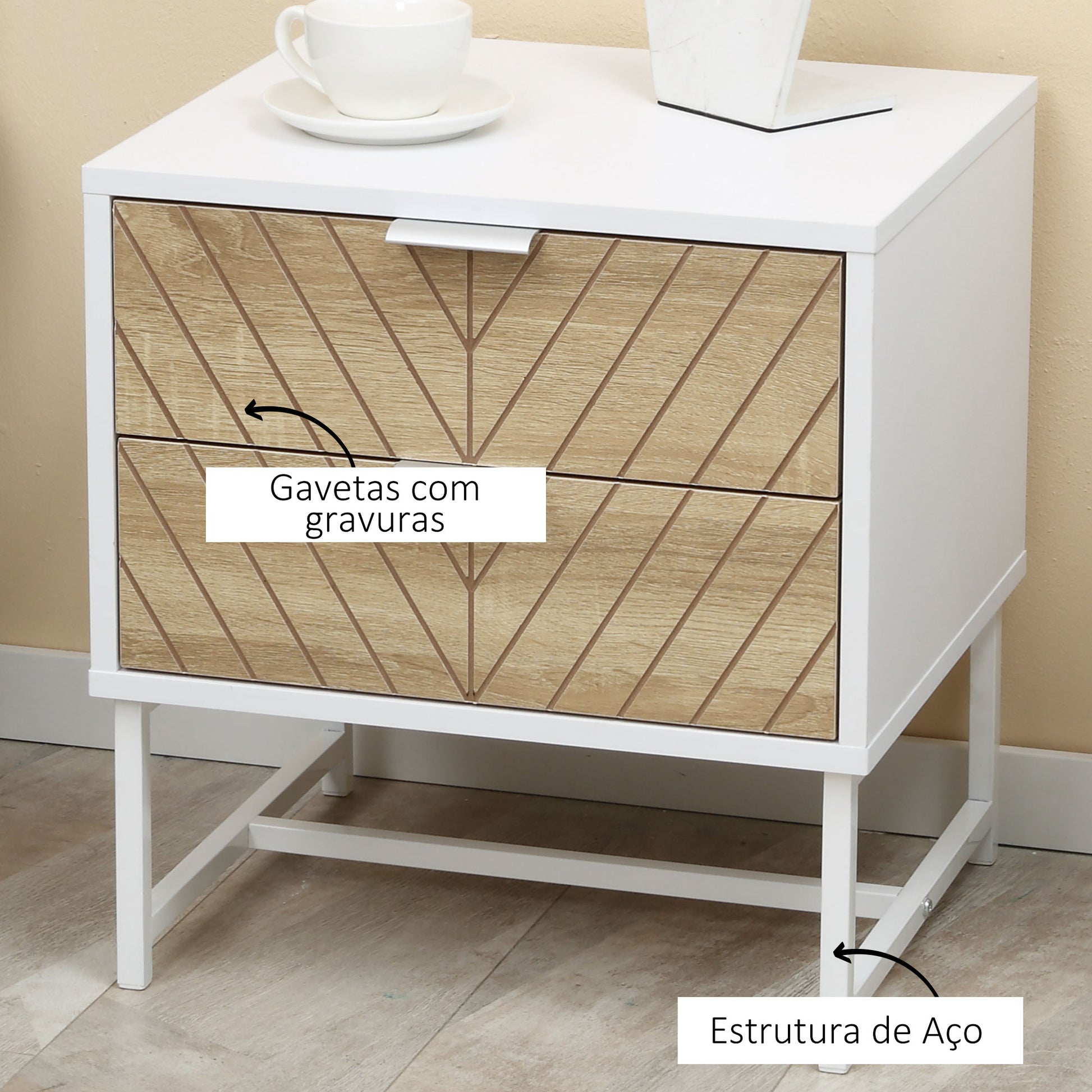 - Benefícios: Duas gavetas espaçosas para armazenar diversos objetos, ampla bancada para decorações e design elegante que se adapta a qualquer ambiente.