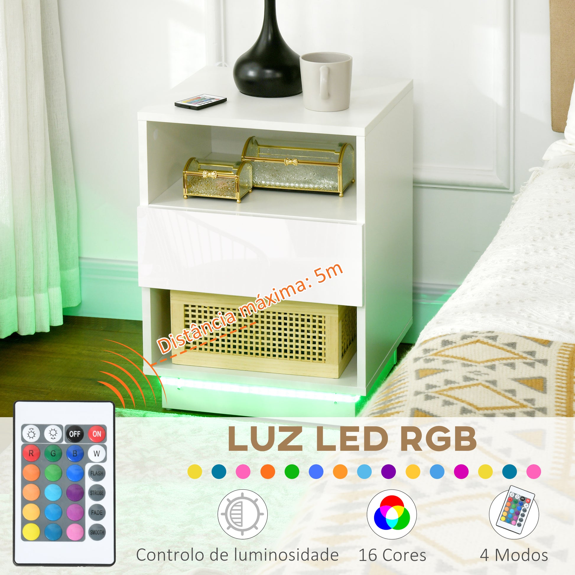 Aproveite a iluminação LED ajustável para criar um ambiente relaxante e acolhedor no seu quarto. Esta mesa de cabeceira é perfeita para quem procura funcionalidade e estilo num só produto.