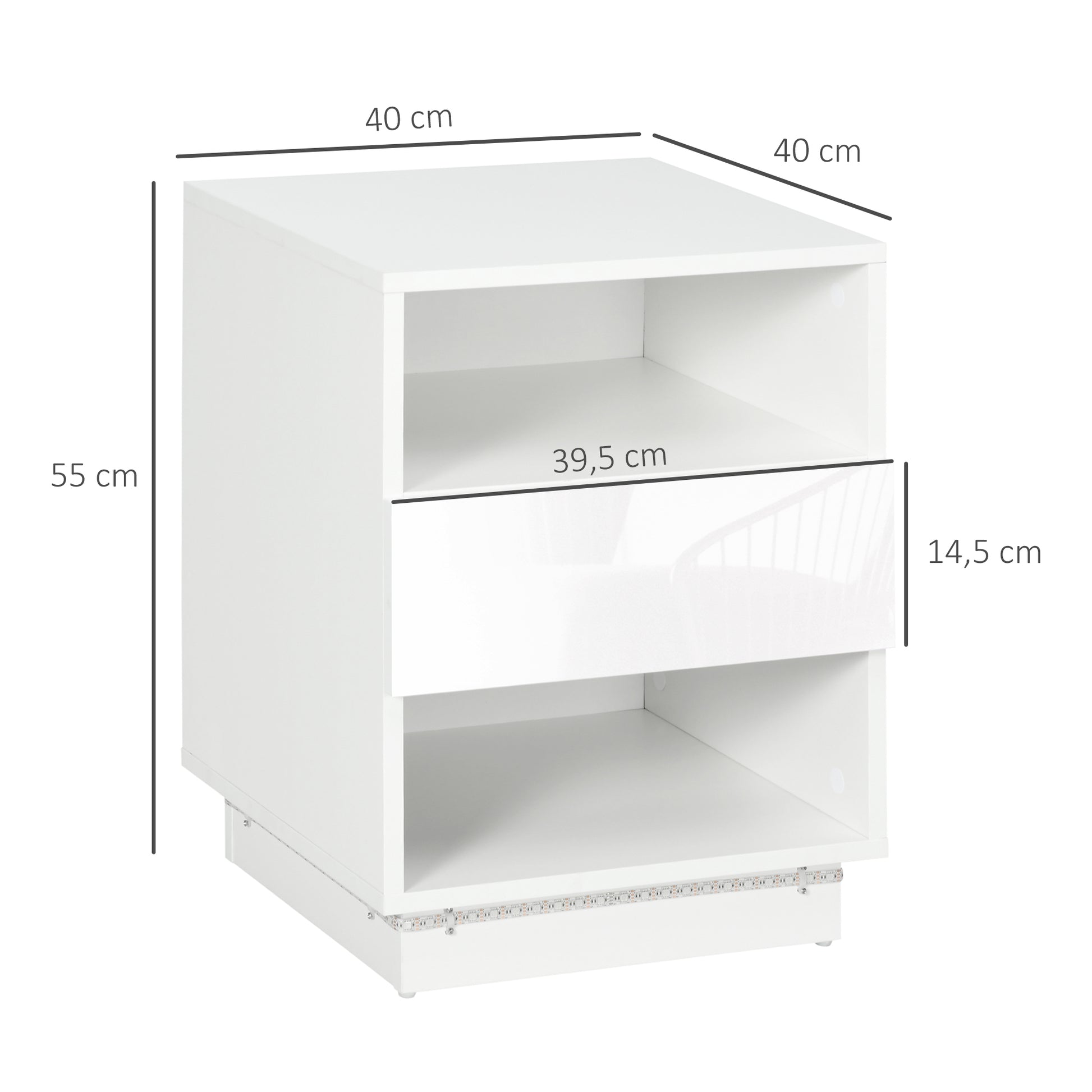 Transforme o seu quarto num verdadeiro cantinho mágico com esta mesa de cabeceira moderna e elegante. Com medidas de 40x40x55 cm e acabamento branco de alto brilho, esta mesa irá adicionar um toque de sofisticação ao seu espaço.