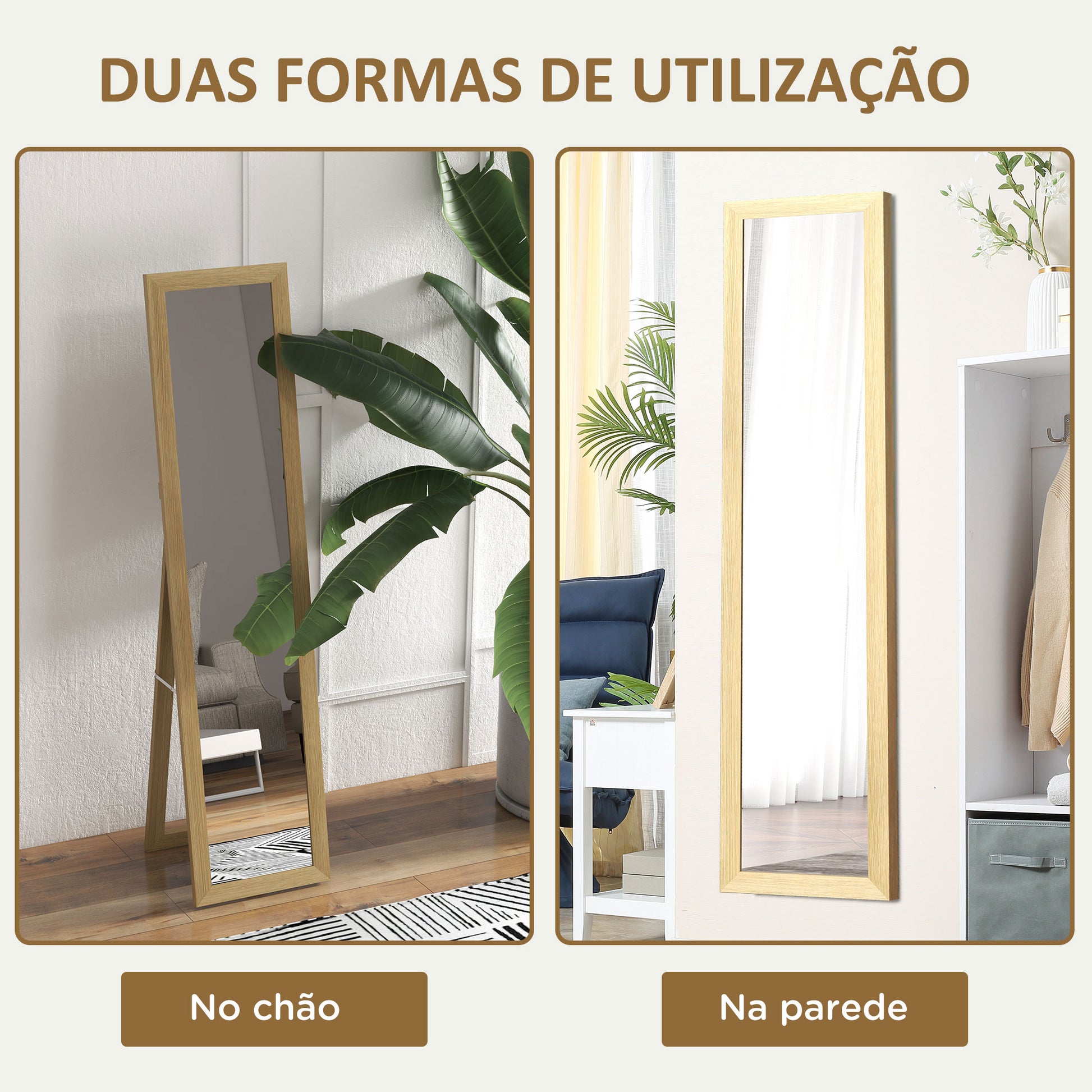Espelho de Corpo Inteiro – 37x155 cm – Cor de Madeira Natural – MDF e Vidro