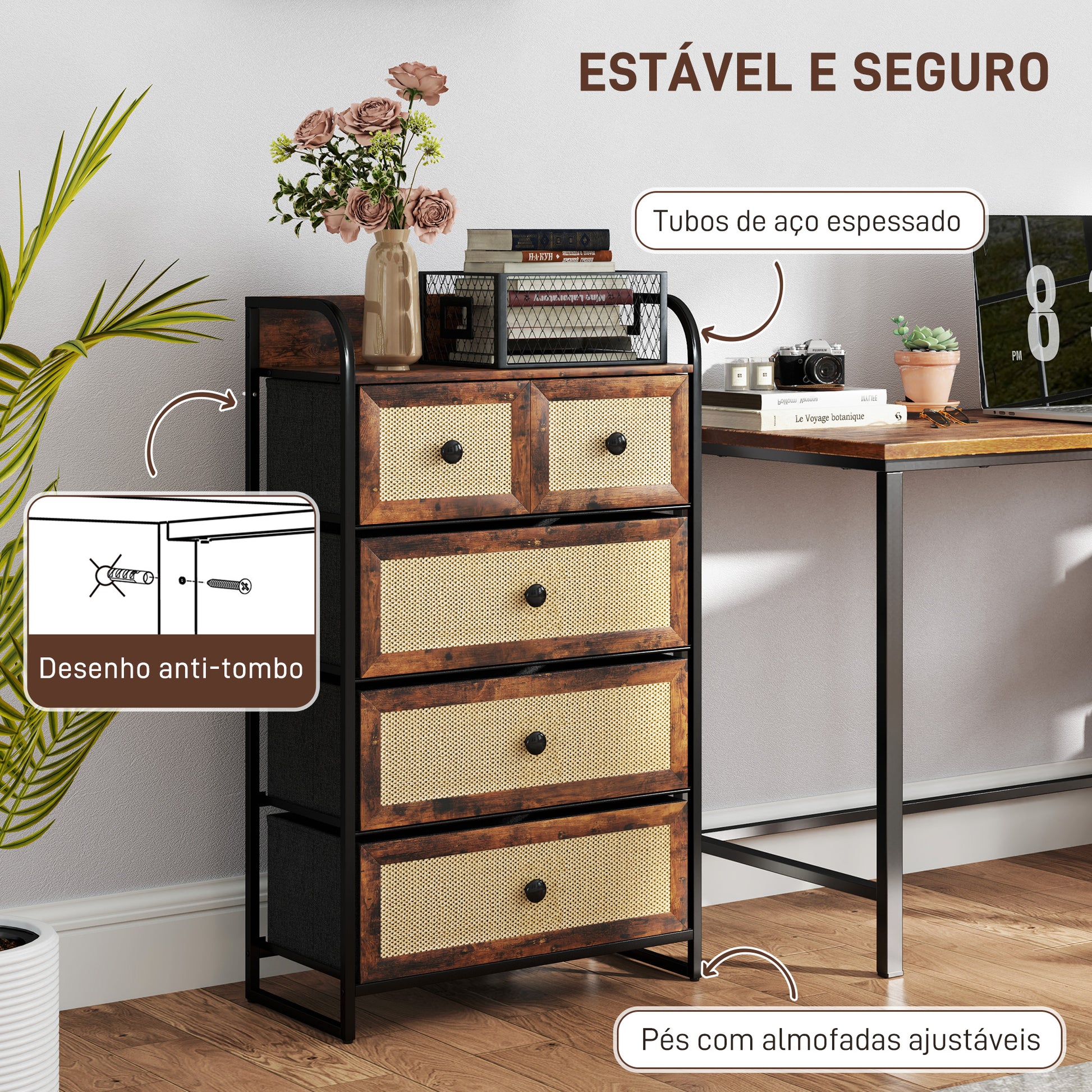Cómoda de Tecido com 5 Gavetas – 58x29x99 cm – Castanho Rústico