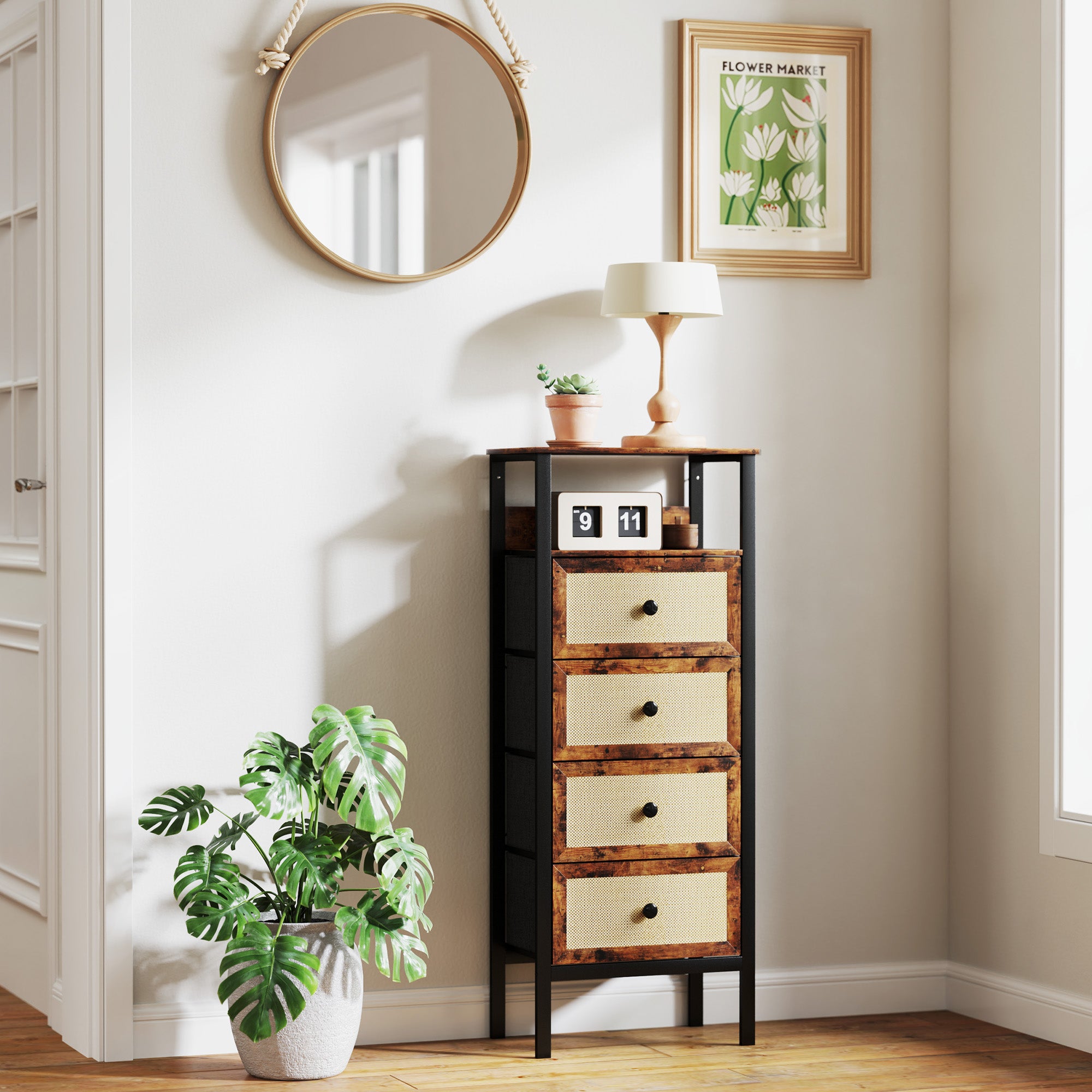 Cómoda de Tecido – 50x30x126 cm – Castanho Rústico – MDF, Aço, Tecido Não Tecido, Vime