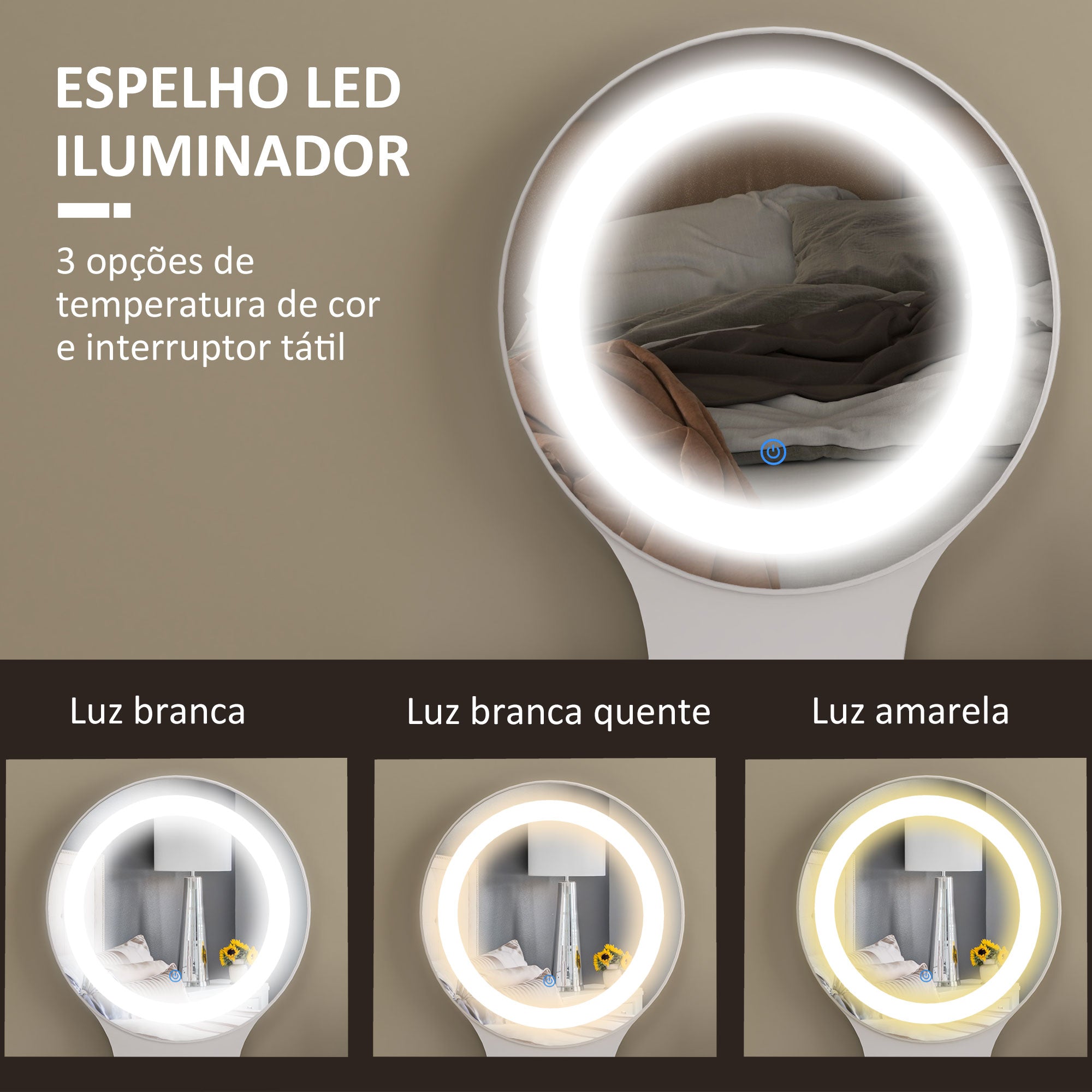 Renove a sua rotina de beleza com este toucador moderno, que inclui um espelho com luz LED regulável em três tonalidades, ideal para personalizar a iluminação conforme necessário.